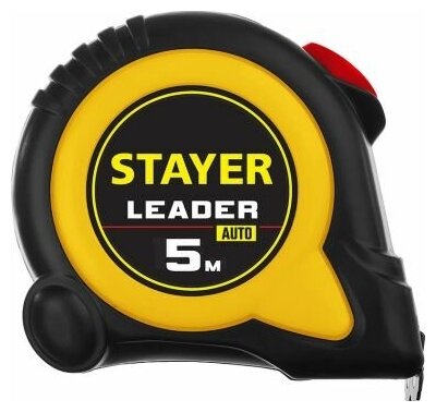 рулетка с автостопом 5м/19мм в обрезин. корпусе stayer leader 3402-05-19_z02