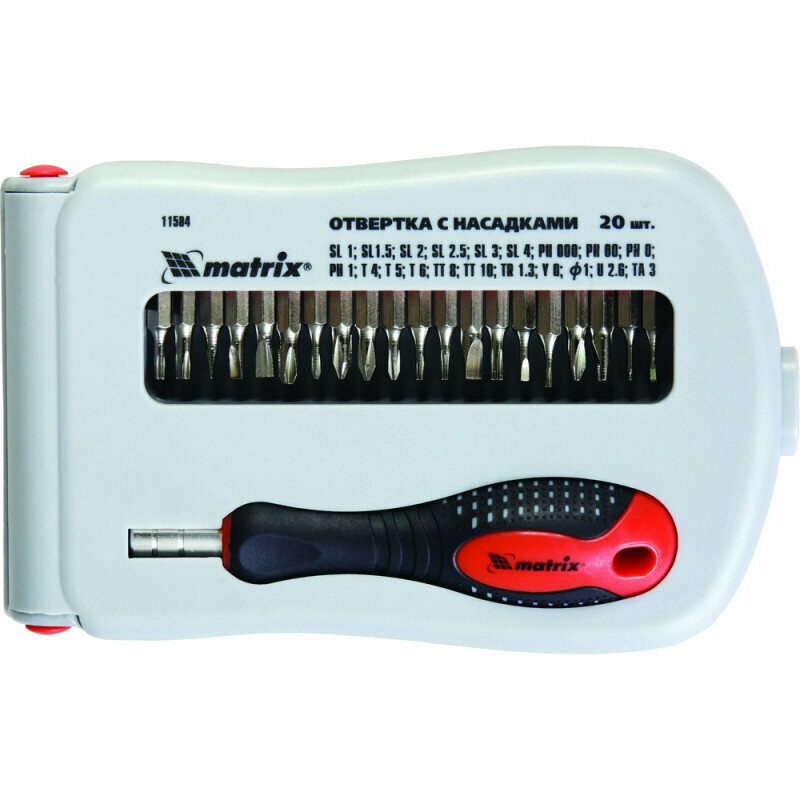 отвертка в наборе с битами 22 предм. для точных работ пласт. пенал fusion matrix 11584