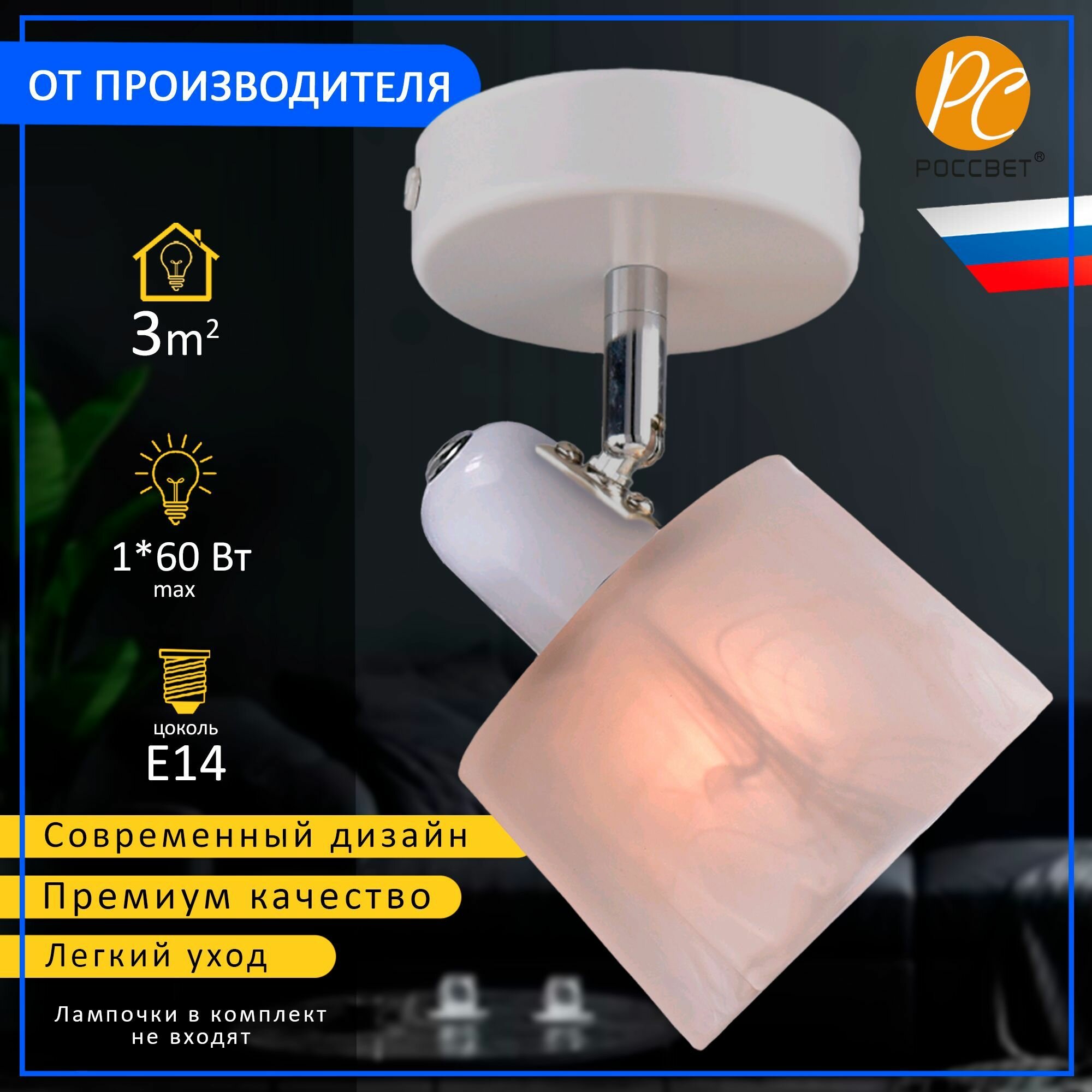 спот россвет рс21862 wt+cr/1c е14 1х60вт ip20