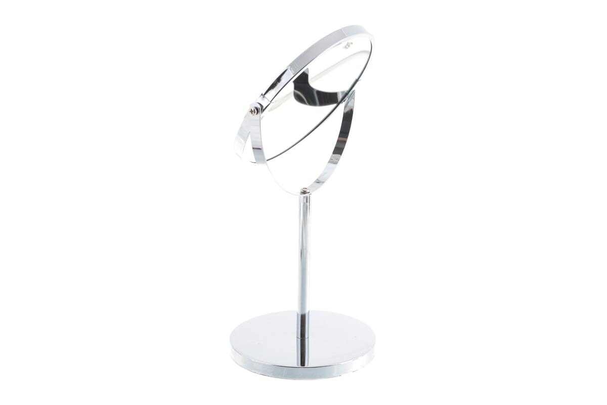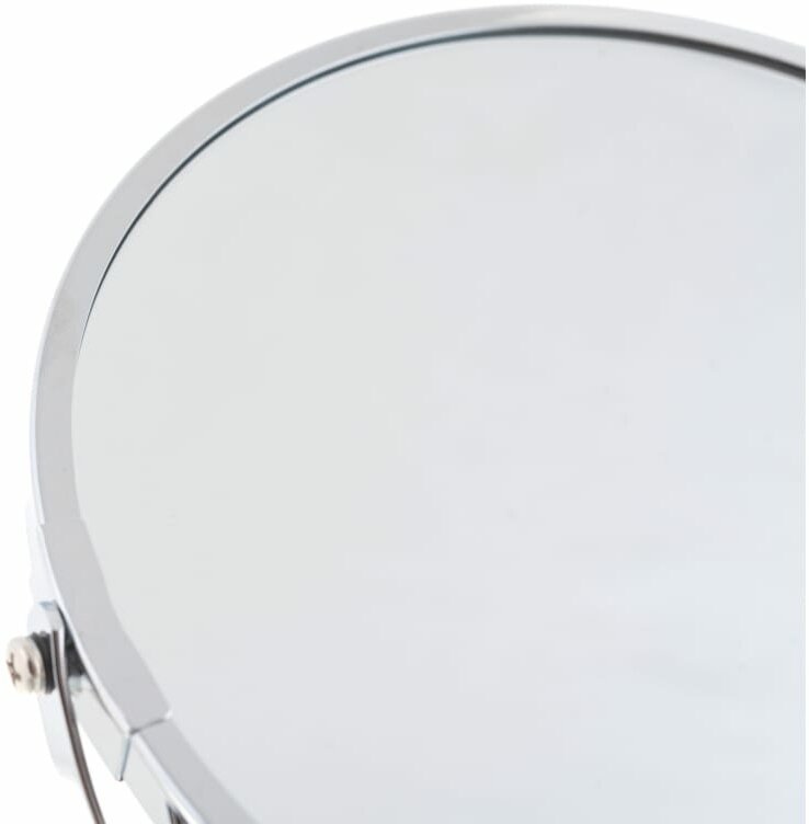 Настольное двустороннее зеркало в оправе из хромированной стали имеет влагостойкое покрытие и регулятор наклона. Оно будет удобным в ванной комнате или на туалетном столике. У зеркала две поверхности, одна из которых дает обычное отражение, другая - с пятикратным увеличением.