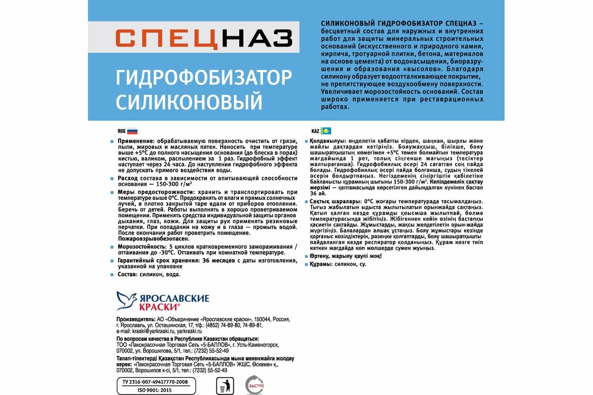 гидрофобизатор силиконовый спецназ 5л. Ярославские краски Ярославские-8