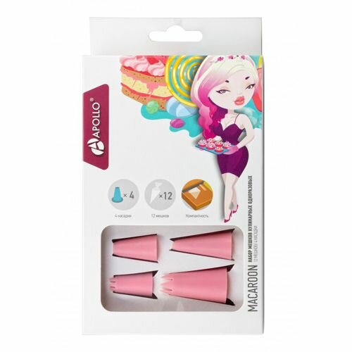 набор мешков кулинарных одноразовых 12шт с 4-мя насадками apollo macaroon mcr-01
