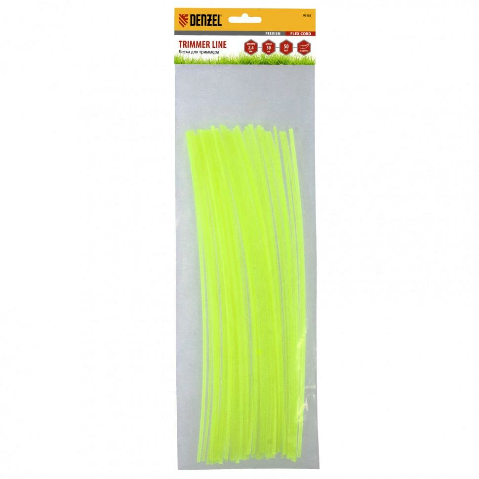 леска для триммера 2.4 (0.3м) квадрат нарезанный 50шт flex cord denzel 96103