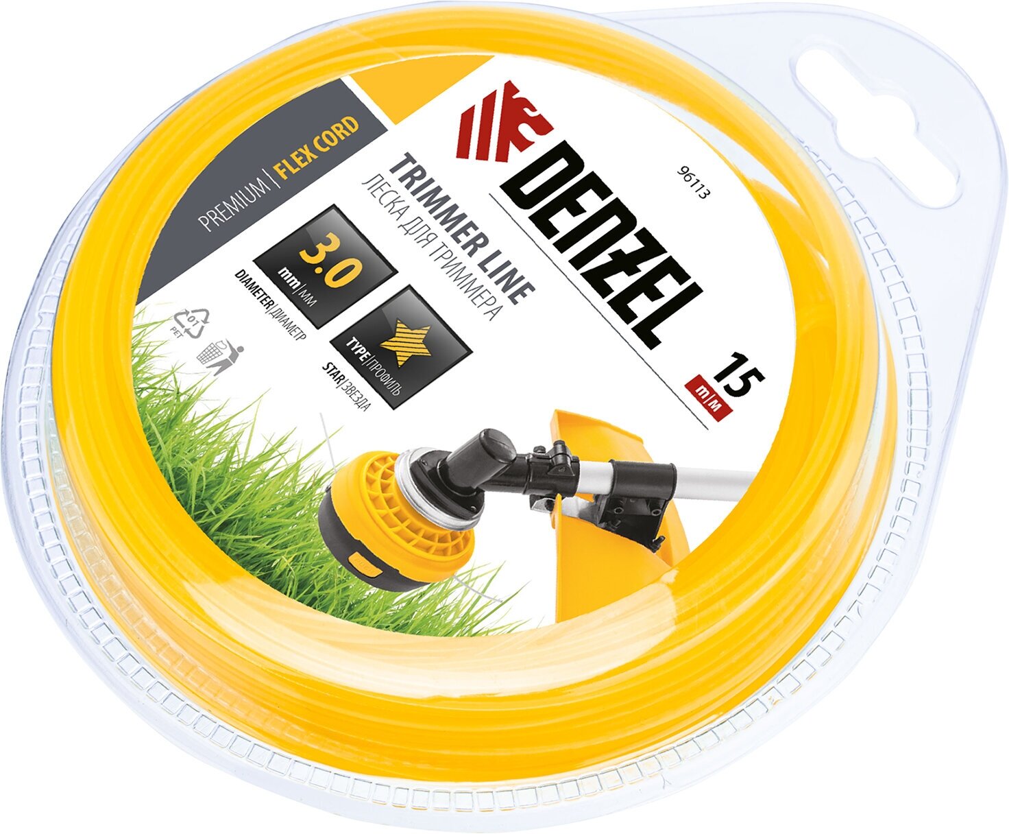 леска для триммера 30 (15м) звездочка flex cord denzel 96113
