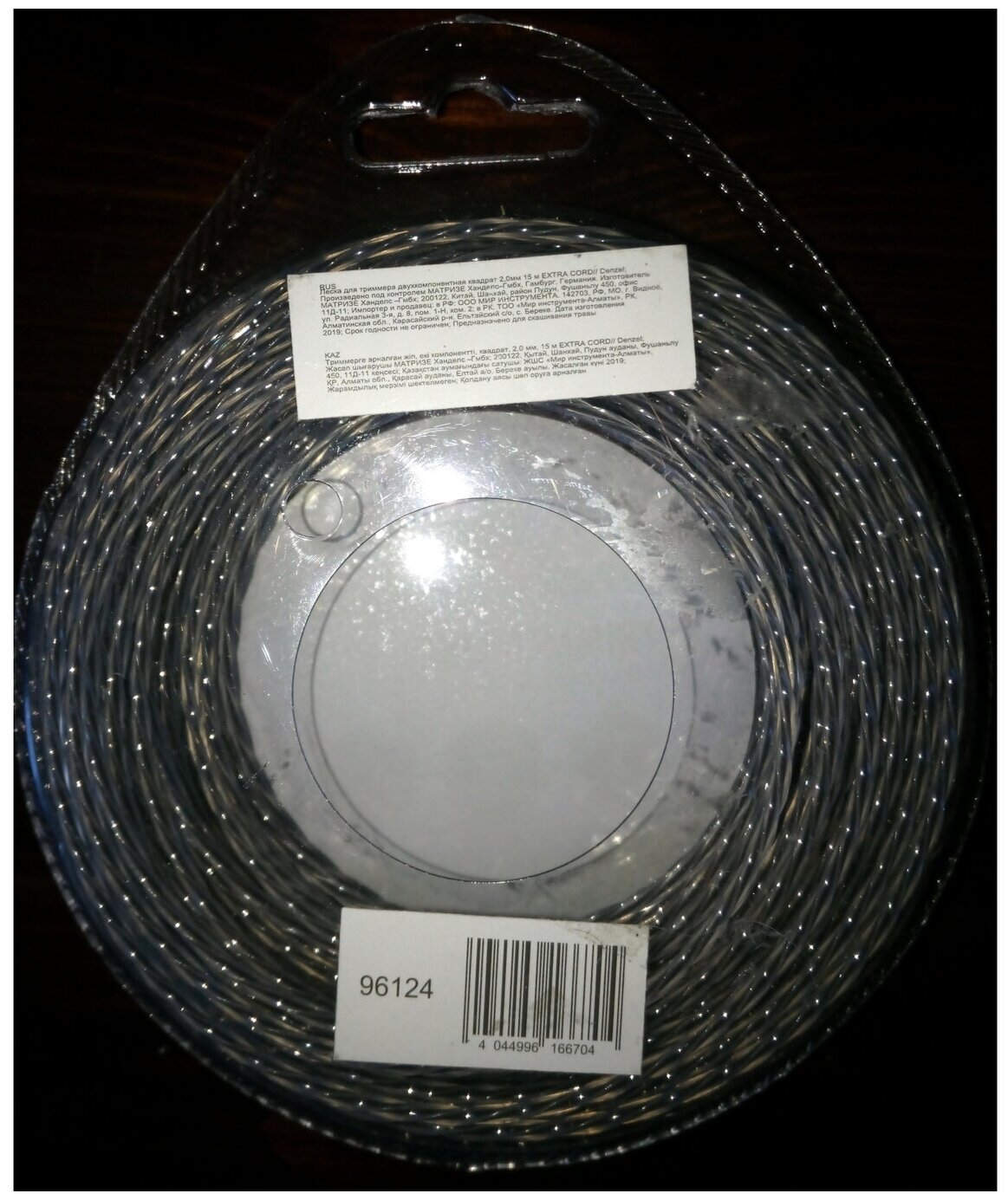 Прочие особенности и свойства | Описание для товара Леска для триммера, двухкомпонентная квадрат 2,0 мм, 15 м Extra cord Denzel скоро обновится. |