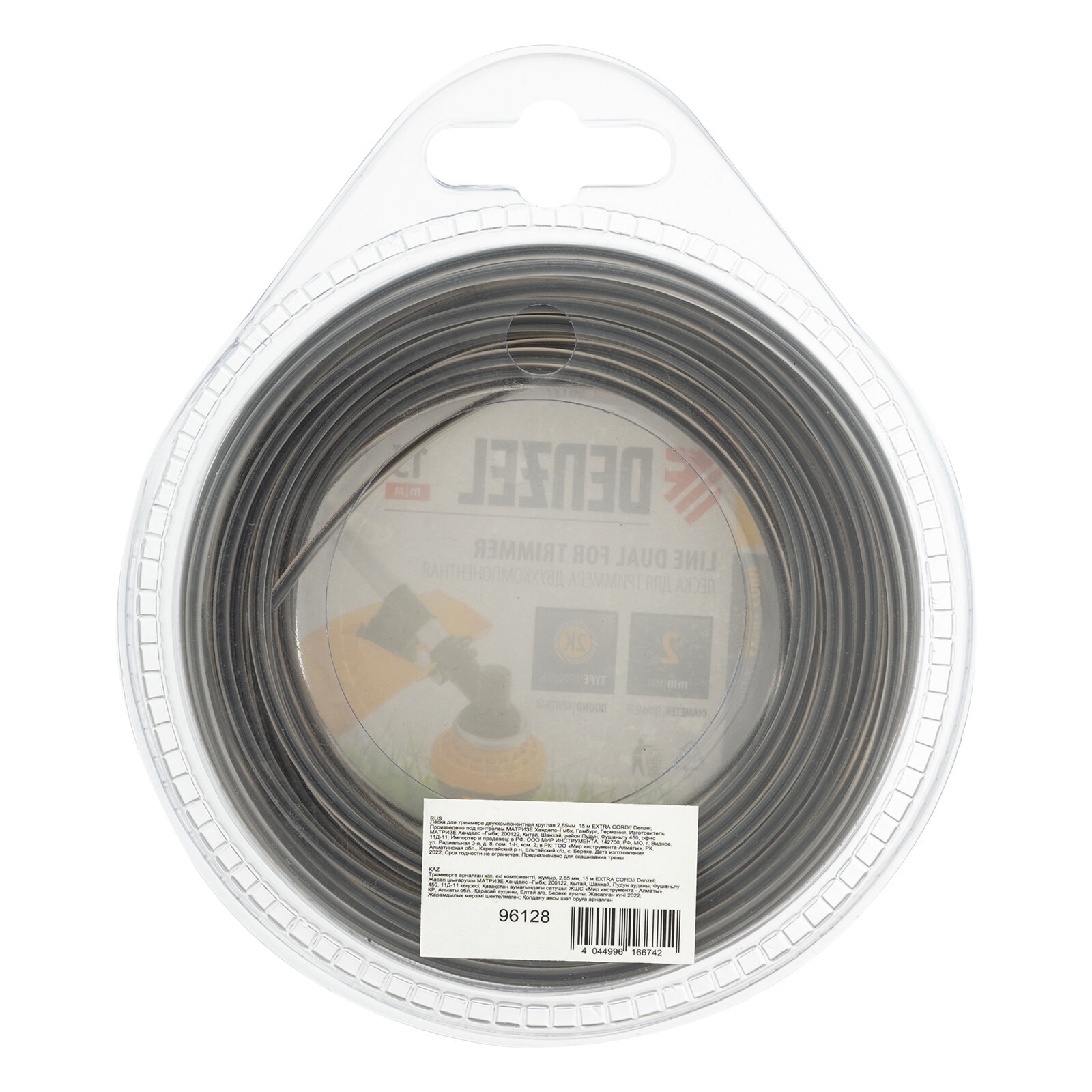 леска для триммера 2.65 (15м) круглая двухкомпонентная extra cord denzel 96128