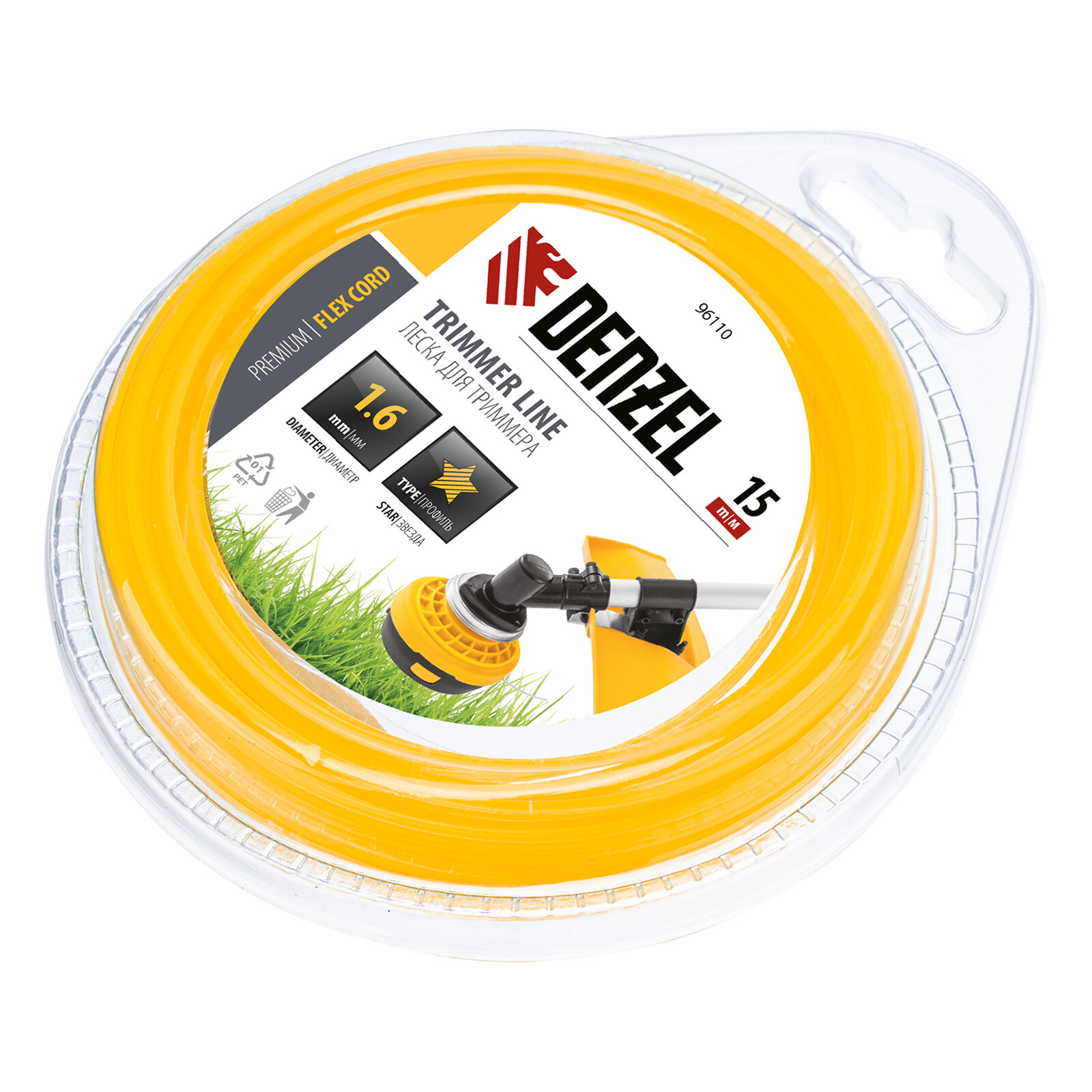 Леска Denzel Flex cord применяется в качестве режущего материала в электрических и бензиновых триммерах. Изготовлена из высококачественного нейлона с формой сечения "звезда", обладающего высокой износостойкостью. В поставку входит блистер с леской длиной 15 м и диаметром сечения 1,6 мм. За счет наличия острых граней, леска подходит для ровного скашивания травы различной жесткости, а также молодого кустарника.