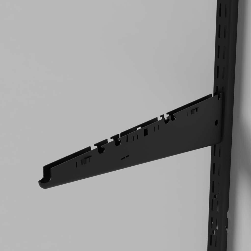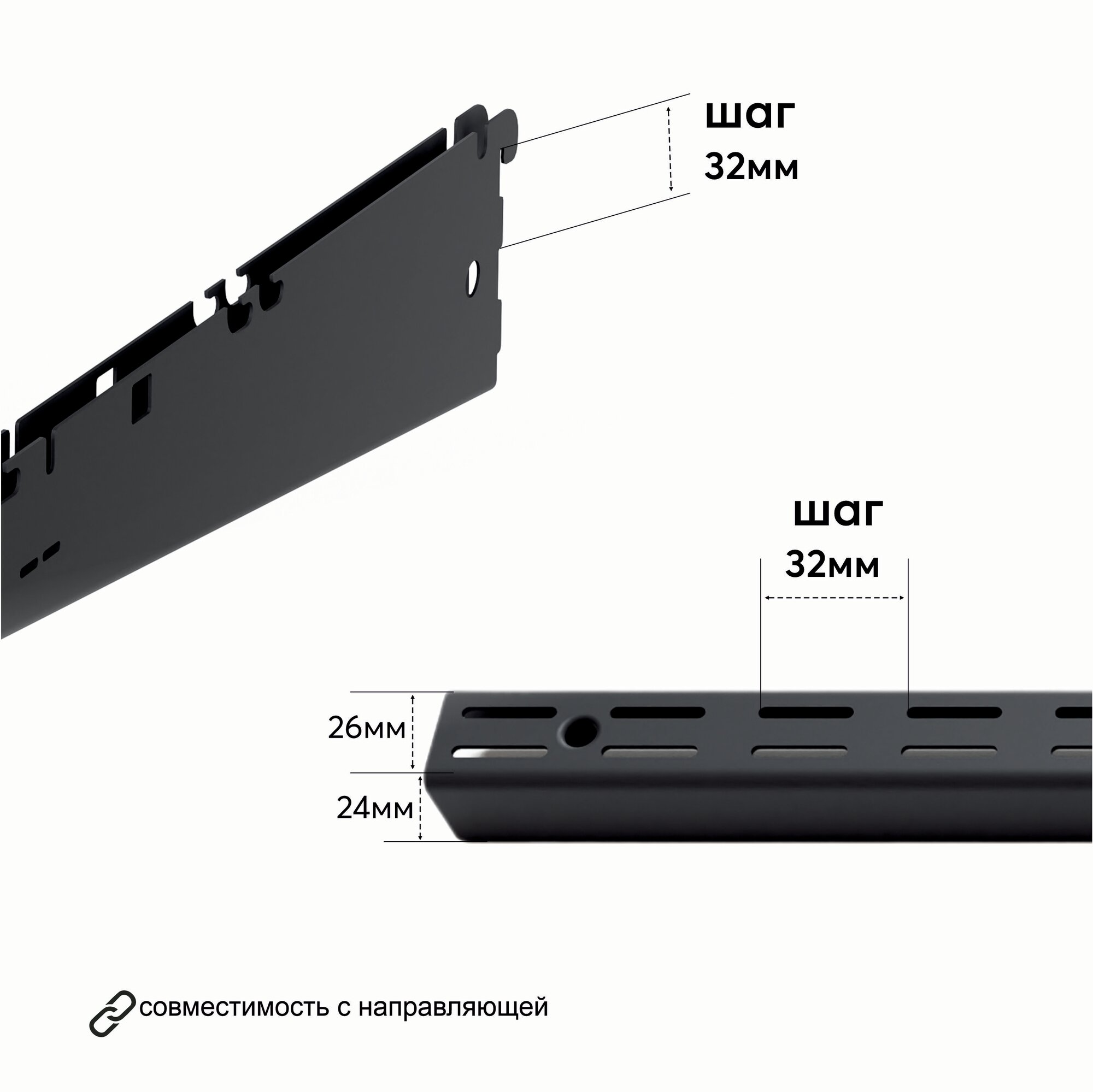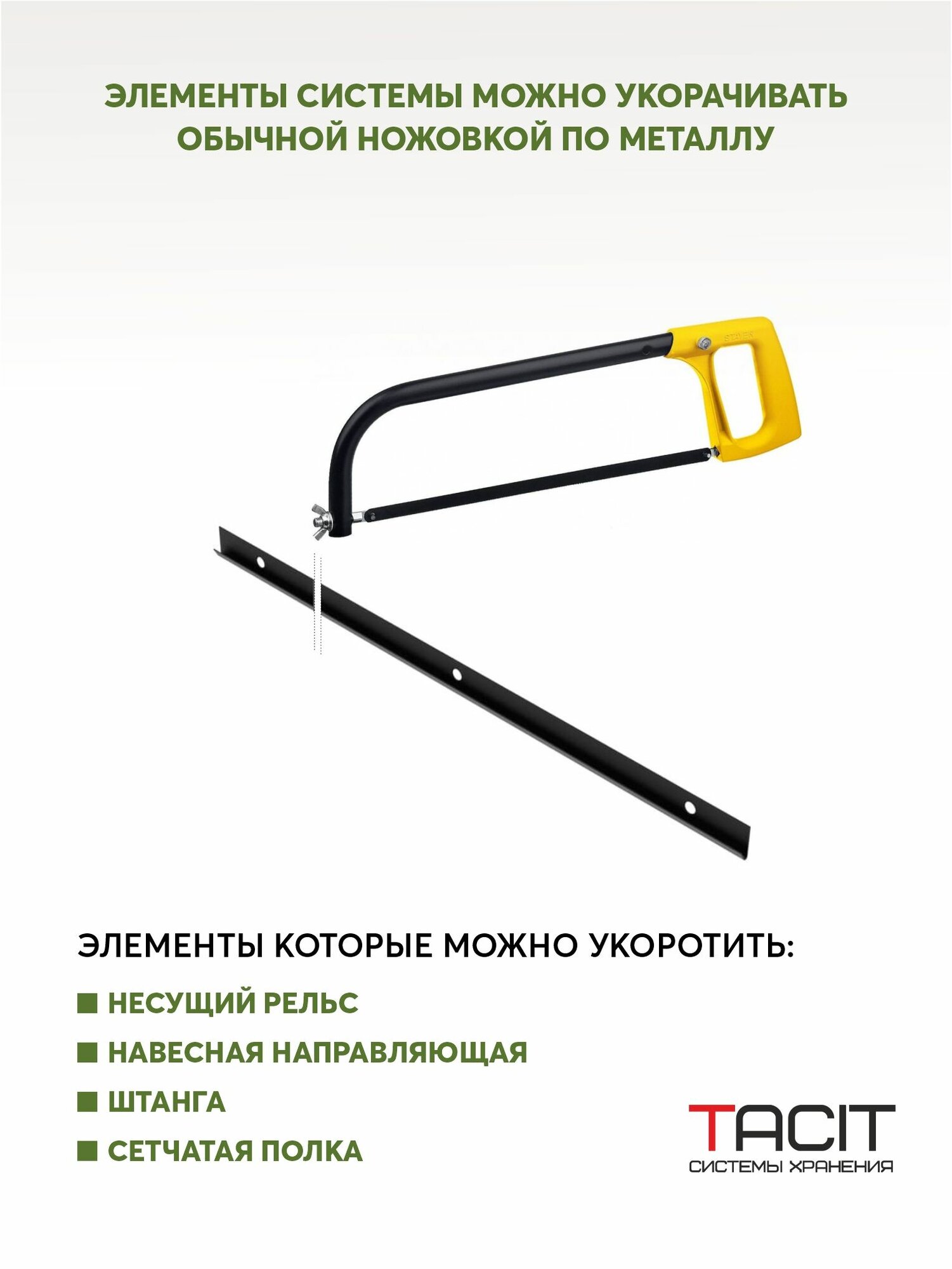 Кронштейн 420мм. Устанавливается в вертикальную двухпазную направляющую (RD.2.000). Имеет прорези для установки элементов хранения стеллажной системы: сетчатые и металлические полки, полки для обуви,подвесы для горизонтальной штанги, пластиковые контейнеры, сетчатые корзины.