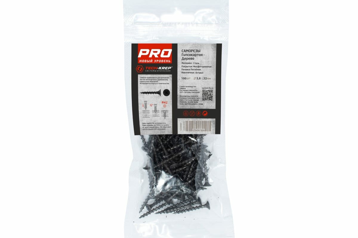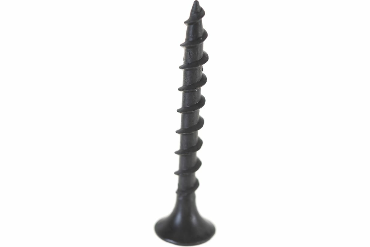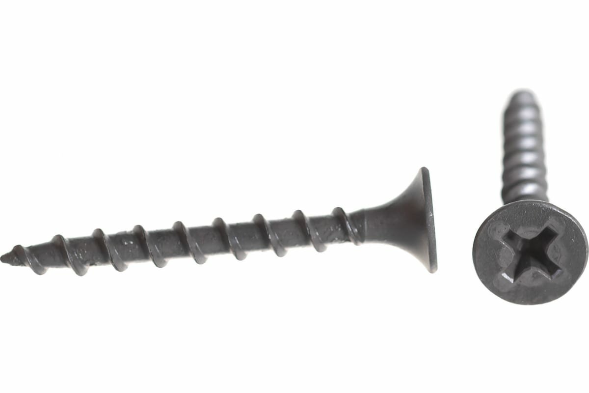 Саморез из фосфатированной стали,с потайной головкой, шлиц PH2, острым наконечником, крупной резьбой.Используется для крепления листов гипсокартона в деревянное основание,без предварительного сверления. Фосфатированное покрытие защищает саморез от коррозии.