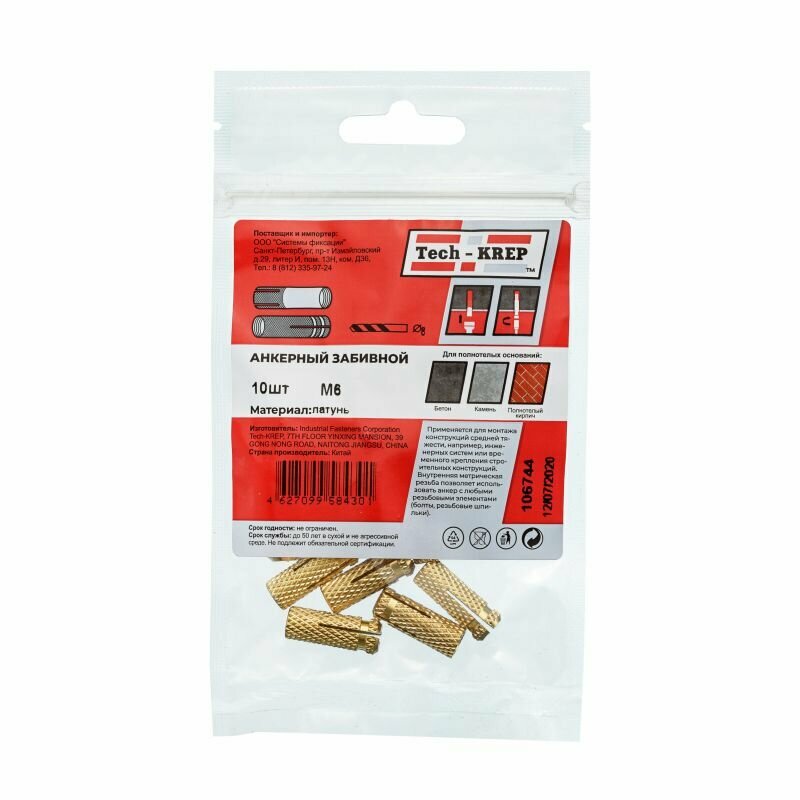 анкер забиваемый латунный м6 (10шт) пакет tech-krep М6 (10 шт.)