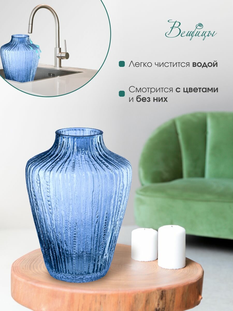 ваза декоративная 190*190*260 вещицы синий стекло csa-16