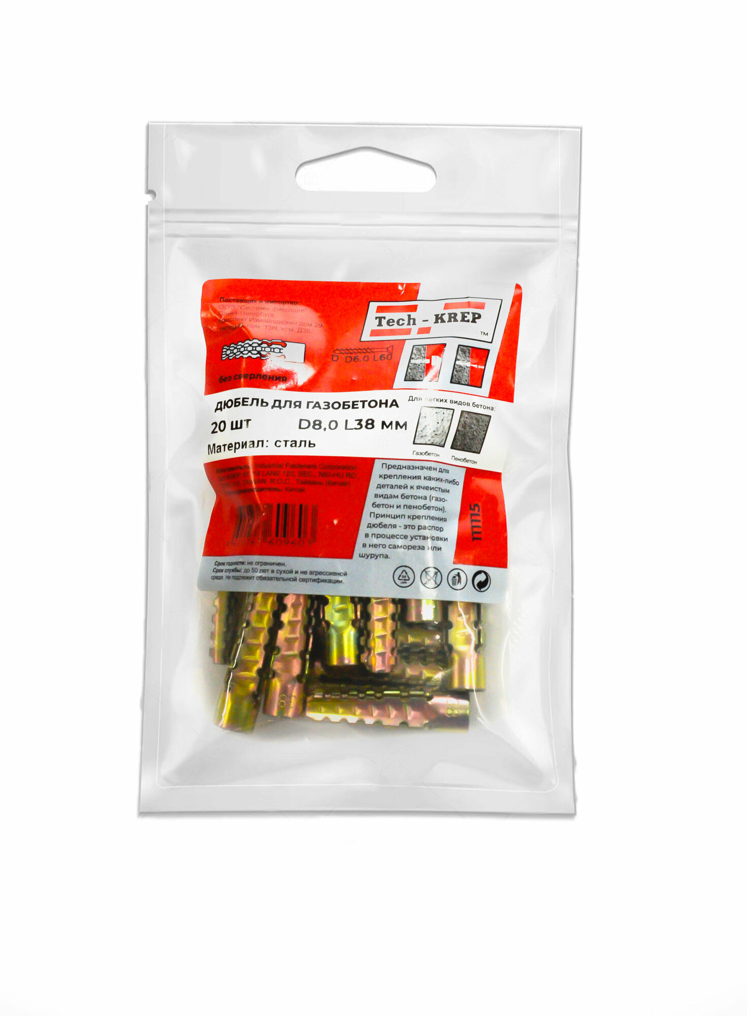дюбель для газобетона 8х38 (20 шт) Tech-Krep 8х38 (20 шт.)