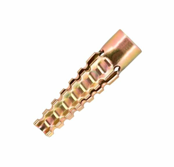 Стальной оцинкованный (жёлтый цинк) распорный дюбель для разных оснований. В ячеистом бетоне монтируется без сверления отверстия.