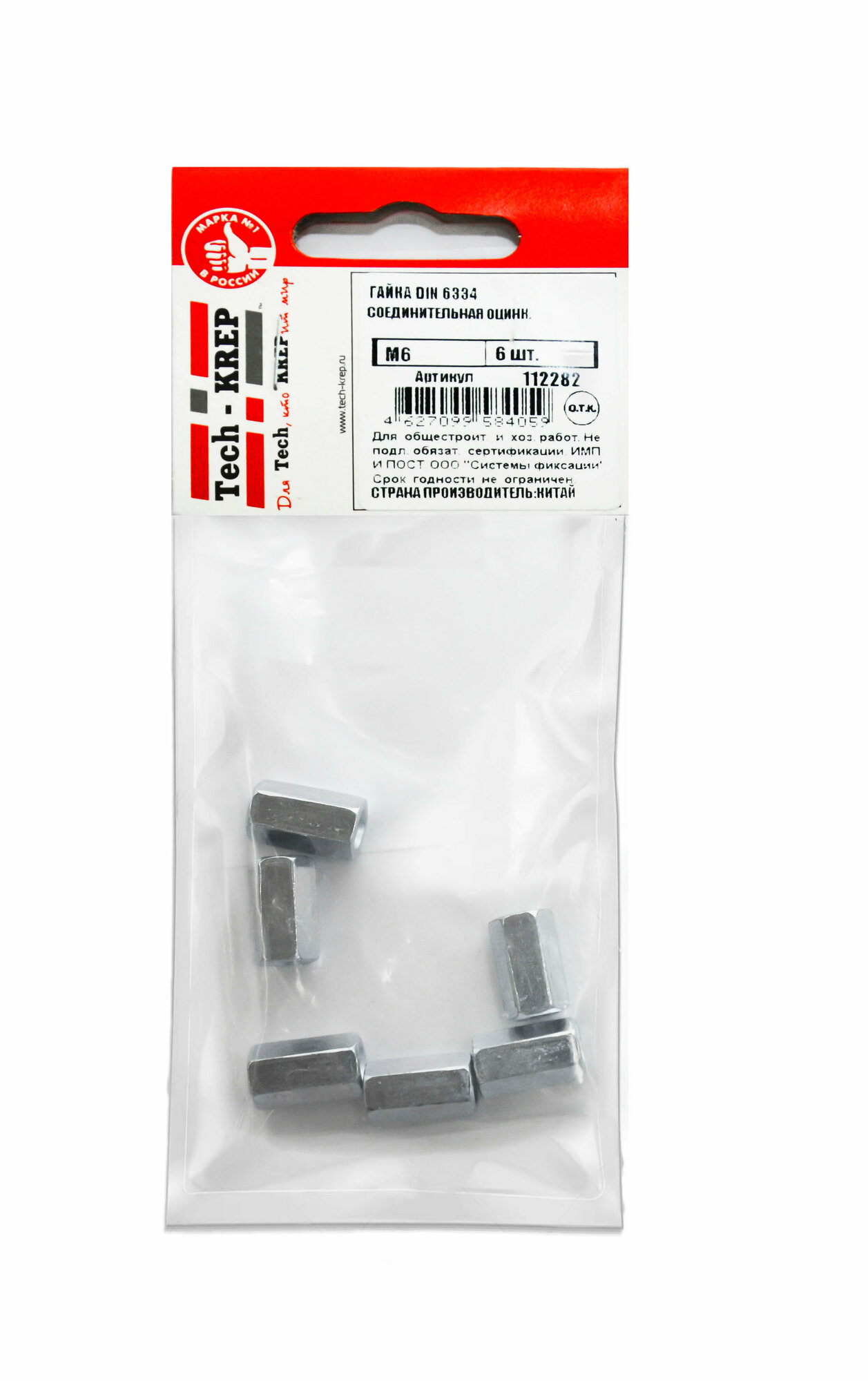 гайка din6334 соединительная оцинк. м6 (6 шт) Tech-Krep