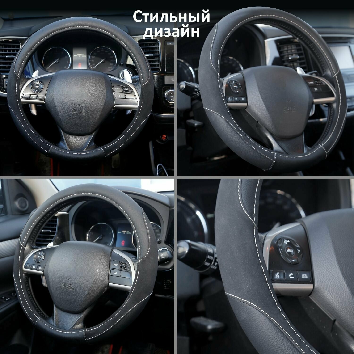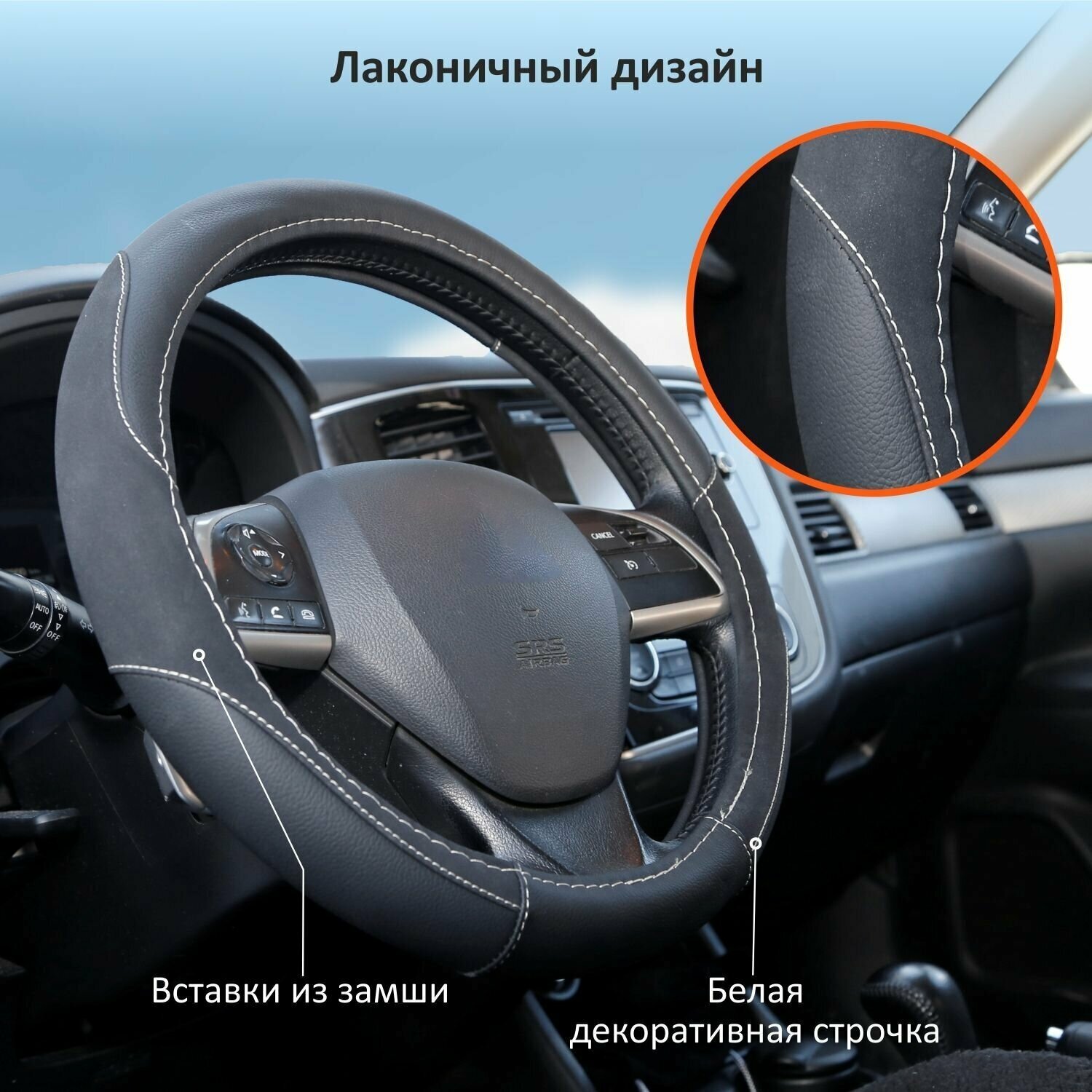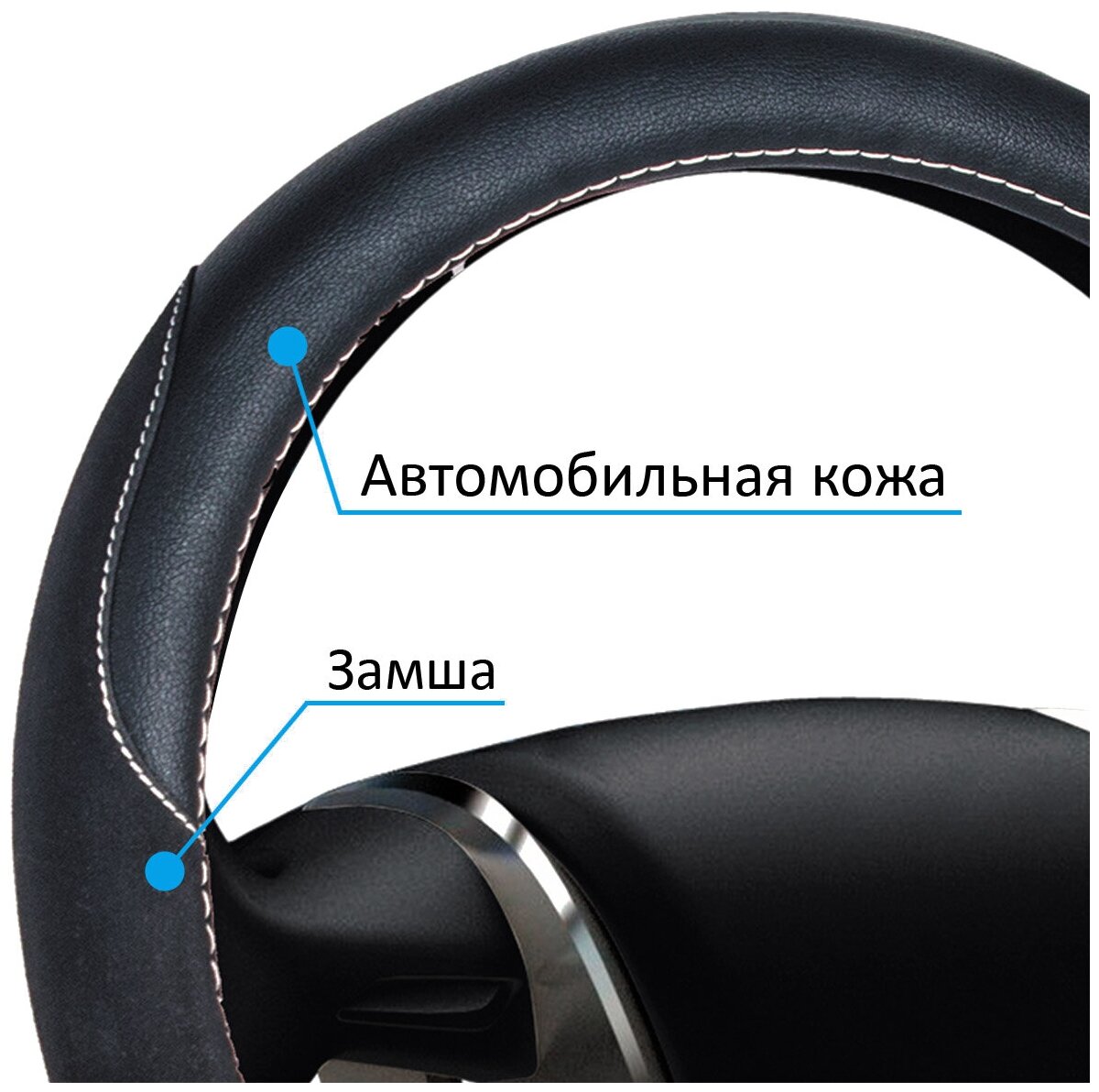 Оплетка на руль Senator Мichigan из материала, сочетающего высококачественную автомобильную кожу и замшу, на гладком резиновом ободе. Оригинальный дизайн сделает интерьер автомобиля более выразительным. Замшевые вставки устойчивы к протиранию.Оплетка Senator Мichigan легко устанавливается на рулевое колесо автомобиля и защищает его от потертостей и загрязнений. Отличительные особенности:- замшевые вставки;