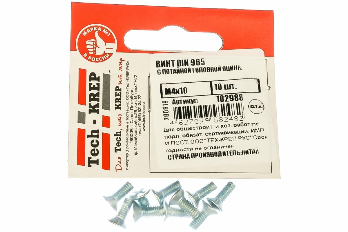 На сегодняшний день товар «винт din965 с потайной головкой оцинк. м4х10 (10шт) пакет tech-krep» можно купить с кешбеком в 1 магазине: Яндекс.Маркет