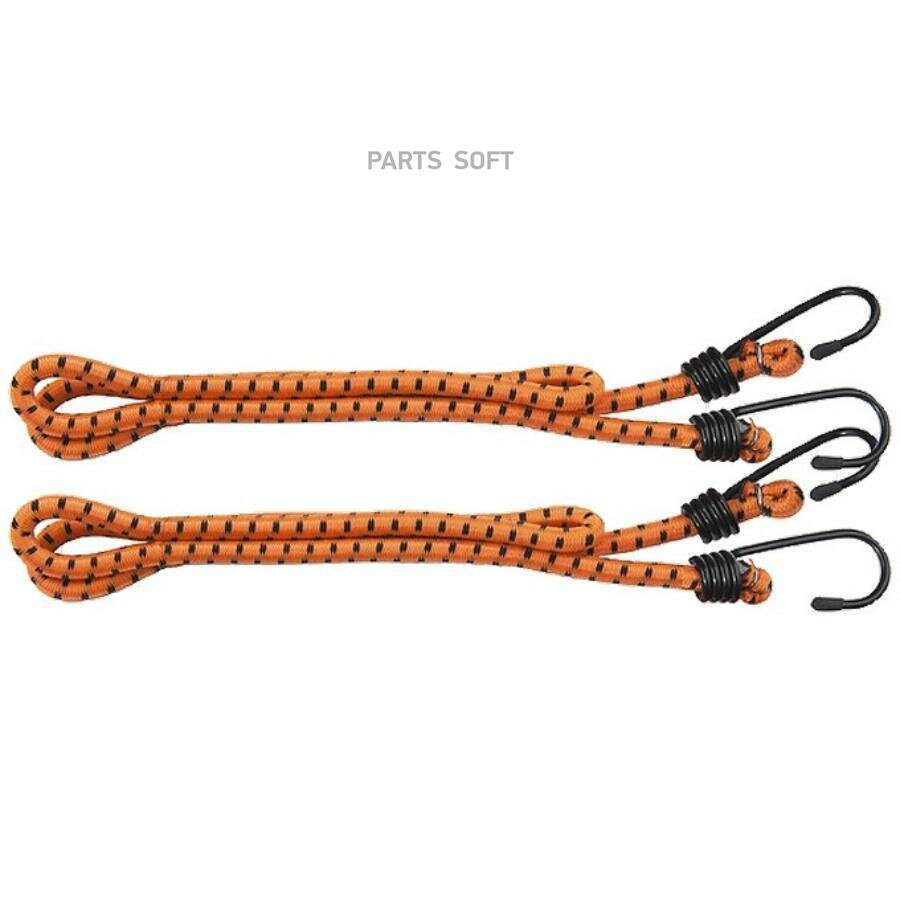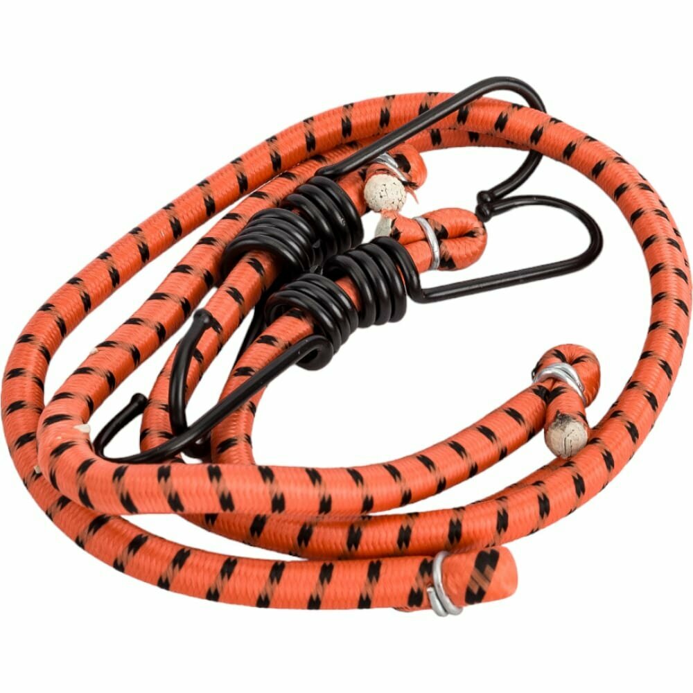 Усиленные багажные резинки Stels 54360, 2 шт. длиной 600 мм, используются для перевозки грузов. С их помощью можно закреплять различные предметы в прицепе или багажнике на крыше легковой автомашины. Жгуты толщиной 8 мм изготовлены из резины с латексом, поэтому обладают высокой эластичностью и прочностью. Будут полезны автовладельцам. ПреимуществаПредельная нагрузка для жгутов составляет 40 кг, что обеспечивает надежную фиксацию груза во время движения автомобиля. Крюки изготовлены из углеродистой стали, поэтому они крепко удерживают натянутые резинки. На концах крюков имеются защитные колпачки, предотвращающие повреждение кузова автомашины. Резинки имеют яркий оранжевый цвет, поэтому их легко найти среди автомобильных принадлежностей.