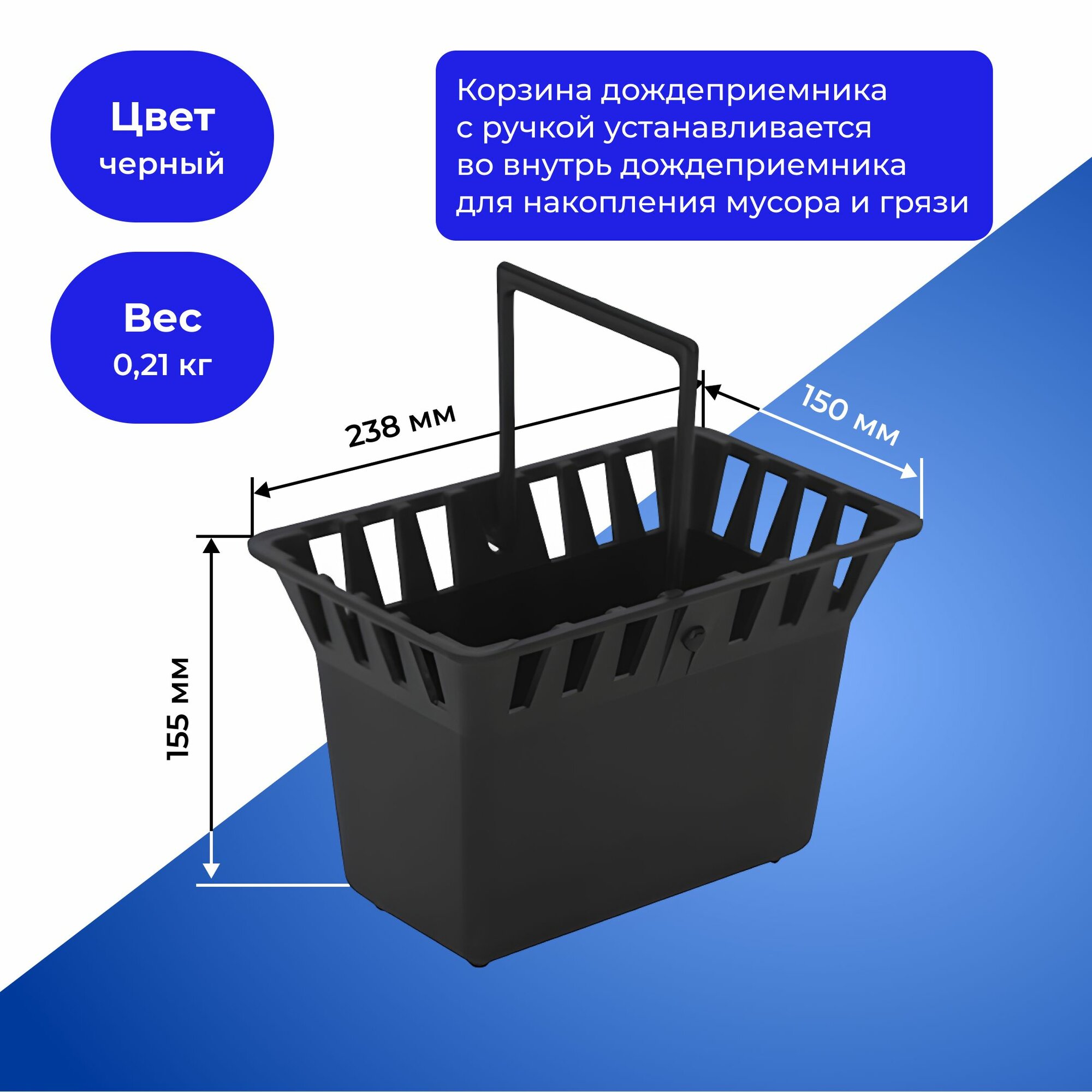 На сегодняшний день товар «корзина дождеприемника с ручкой ecoteck цвет черный 23 х 15 х 15 см» можно купить с кешбеком в 1 магазине: Яндекс.Маркет