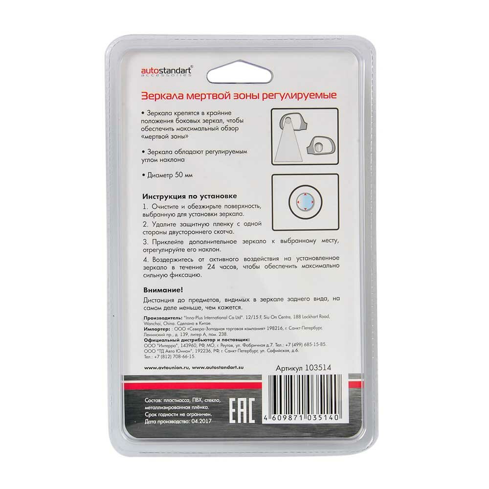 зеркало дополнительного обзора круглое 50мм 2шт auto standart 103514 ООО Спорт-Авто