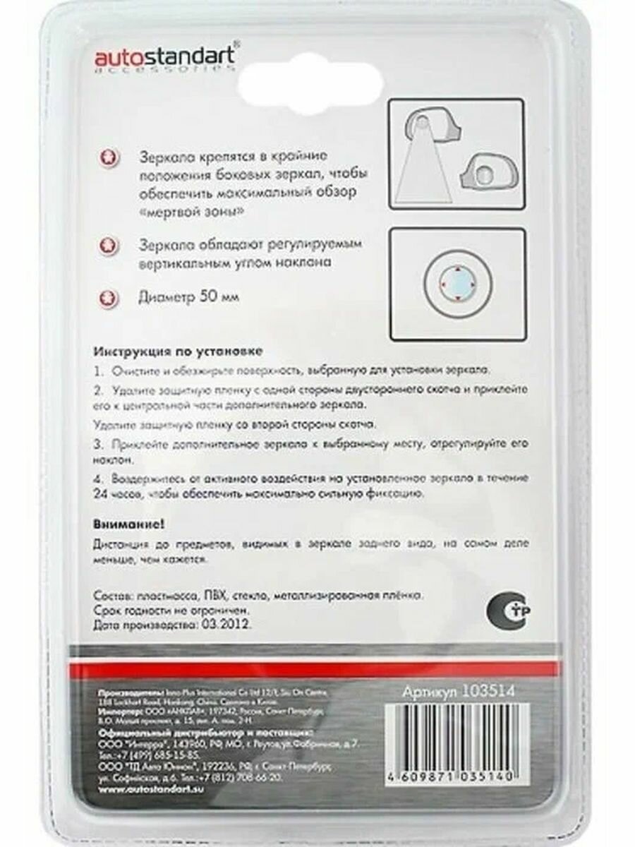 На сегодняшний день товар «зеркало дополнительного обзора круглое 50мм 2шт auto standart 103514 ООО Спорт-Авто» можно купить с кешбеком в 1 магазине: Яндекс.Маркет