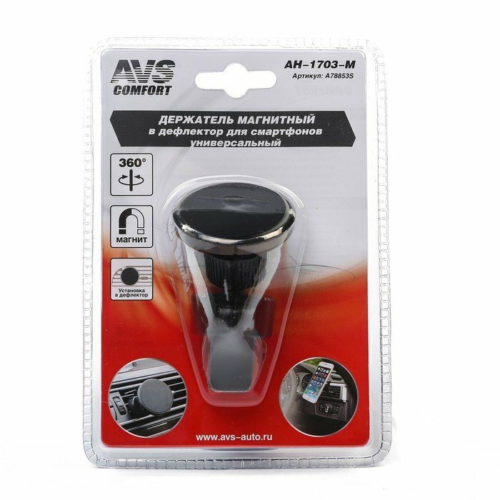 Автомобильный держатель AVS для мобильных устройств обеспечивает надежное крепление и при этом позволяет легко регулировать положение вашего телефона. В комплекте с магнитным держателем идут две металлические пластины разной формы и размера. Лёгкий монтаж на решётку вентиляции в автомобиле.Внимание!Магнитный держатель AVS не наносит вреда мобильным устройствам. Однако не рекомендуется размещать в непосредственной близости от держателя предметы чувствительные к магнитному полю: кредитные карты, магнитные проездные, кардиостимуляторы, жёсткие диски компьютера.Важно!Во избежание перегрева вашего мобильного устройства – сопло решётки вентиляции должно быть закрыто для потока тёплого воздуха.Инструкция по установке:Установите держатель в дефлектор.Приклейте железную пластину к задней части телефона или чехла (железная пластина крепится на 3М скотче).Присоедините телефон к держателю.Состав: Металл, пластик.