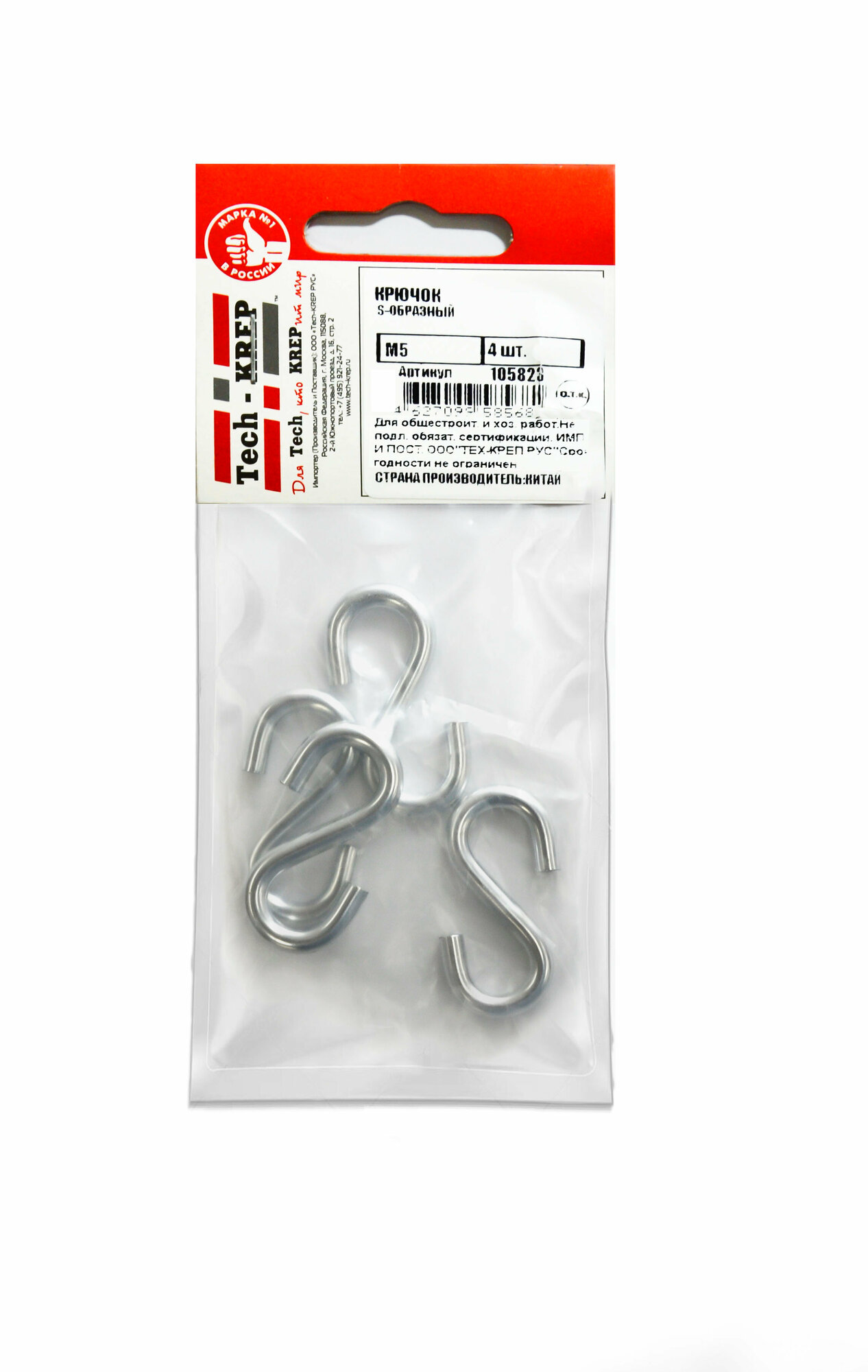 крючок s-образный м5 (4 шт) - пакет tech-krep (размер: 5х50)