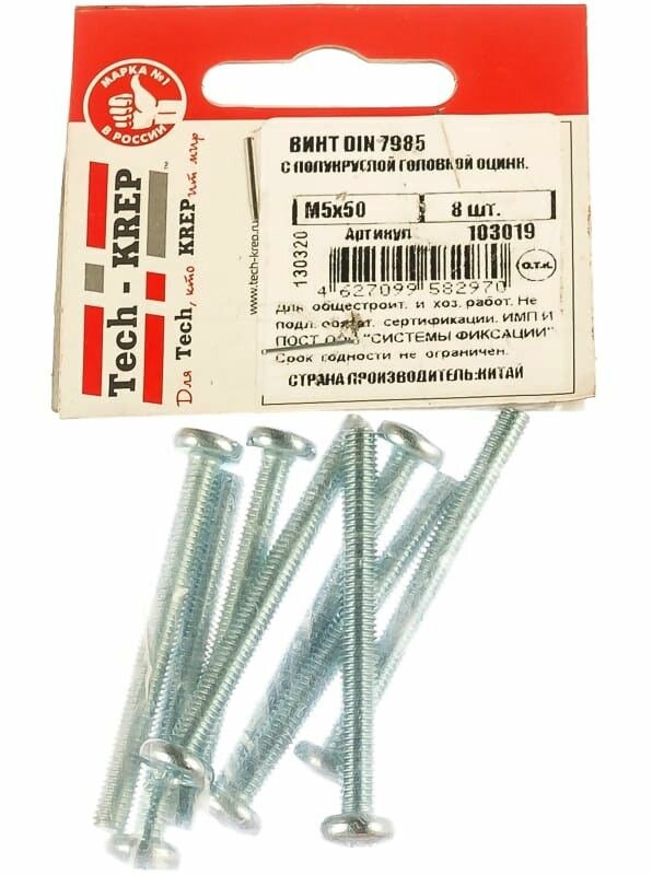На сегодняшний день товар «винт din7985 с полукруглой головкой оцинк. м5х50 (8 шт) Tech-Krep» можно купить с кешбеком в 1 магазине: Яндекс.Маркет