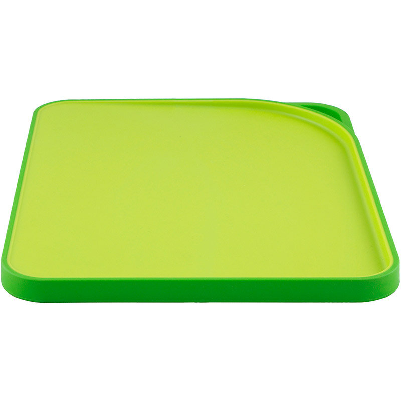 На такой разделочной доске удобно нарезать большое количество продуктов, ведь она имеет специальные завышенные края, за которые не просыпается Ваша еда.