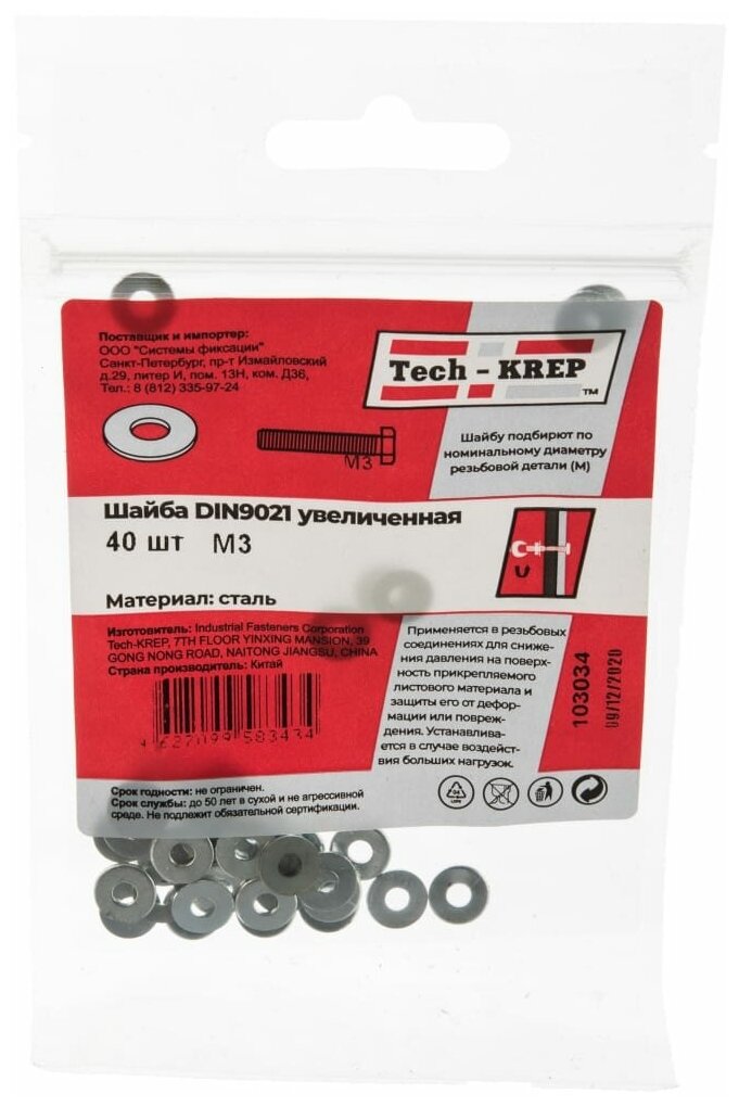 шайба din9021 кузовная оцинк. m3 (40 шт) Tech-Krep