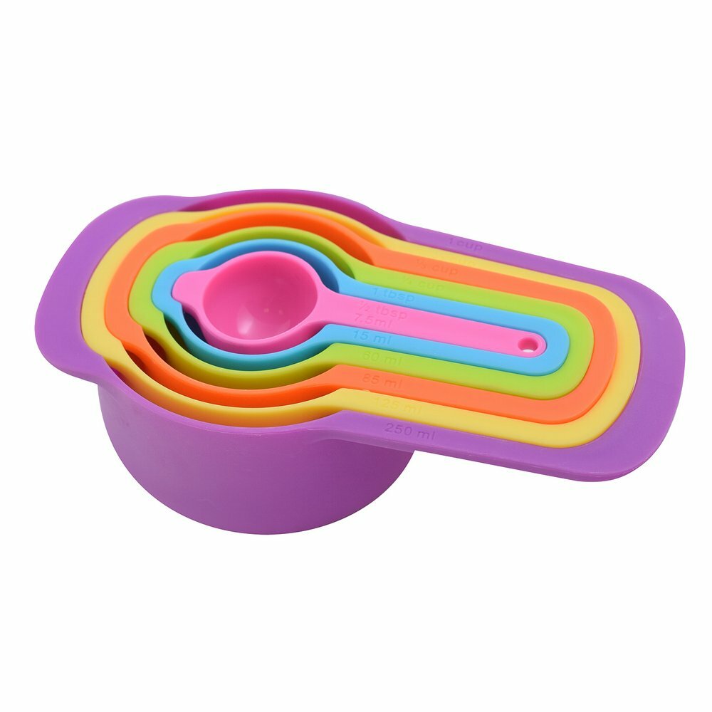 На современной кухне сложно обойтись без мерных ложек, особенно, когда нужно отмерить определенное количество сыпучих или жидких продуктов. Набор мерных ложек включает 6 штук с объемами: 7,5 мл, 15 мл, 60 мл, 85 мл, 125 мл, 250 мл. Это настоящие помощники в приготовлении самых разных блюд, кроме того, они выполнены в ярких цветах и станут приятным дополнением у уже имеющейся кухонной утвари. Изделия удобны в хранении, имеют конструкцию, позволяющую складывать их друг в друга.