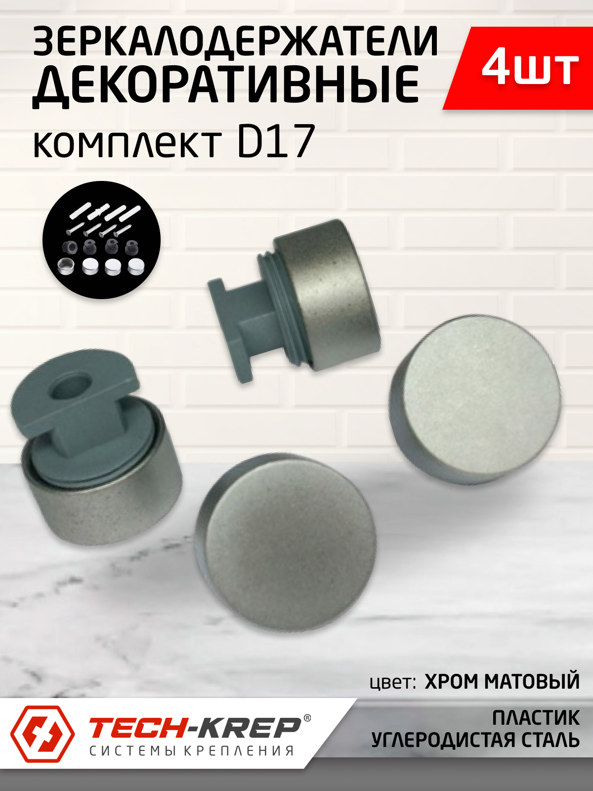 | Комплектация | втулка 4 шт.; колпачок 4 шт.; дюбель 4шт.; шуруп 4шт. |