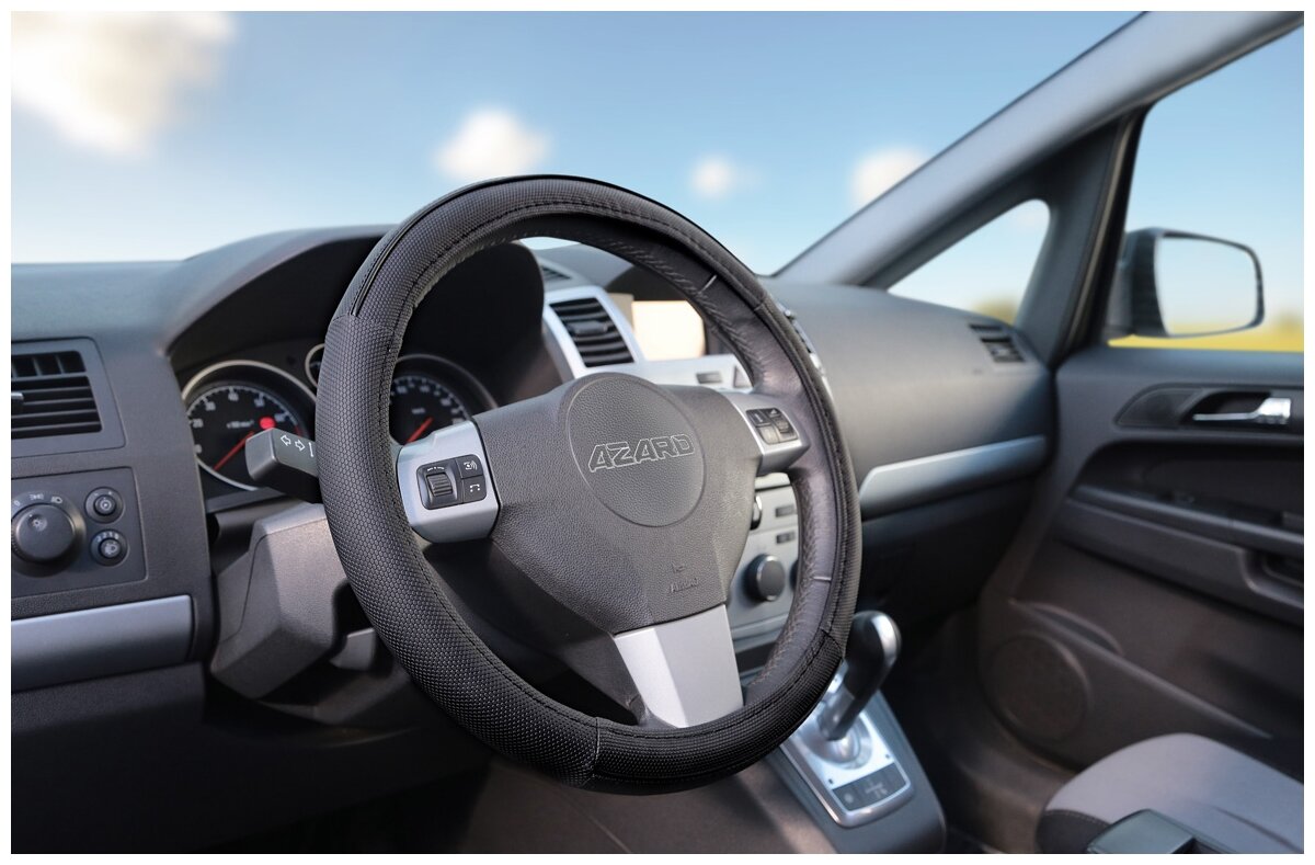 оплетка на руль автомобиля черная размер m (37-39см) объемный винил azard opla0113 ООО АЛЬФА-ТОРГ