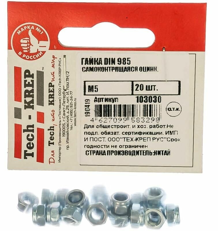 гайка din985 самоконтрящаяся оцинк. м5 (20 шт) Tech-Krep