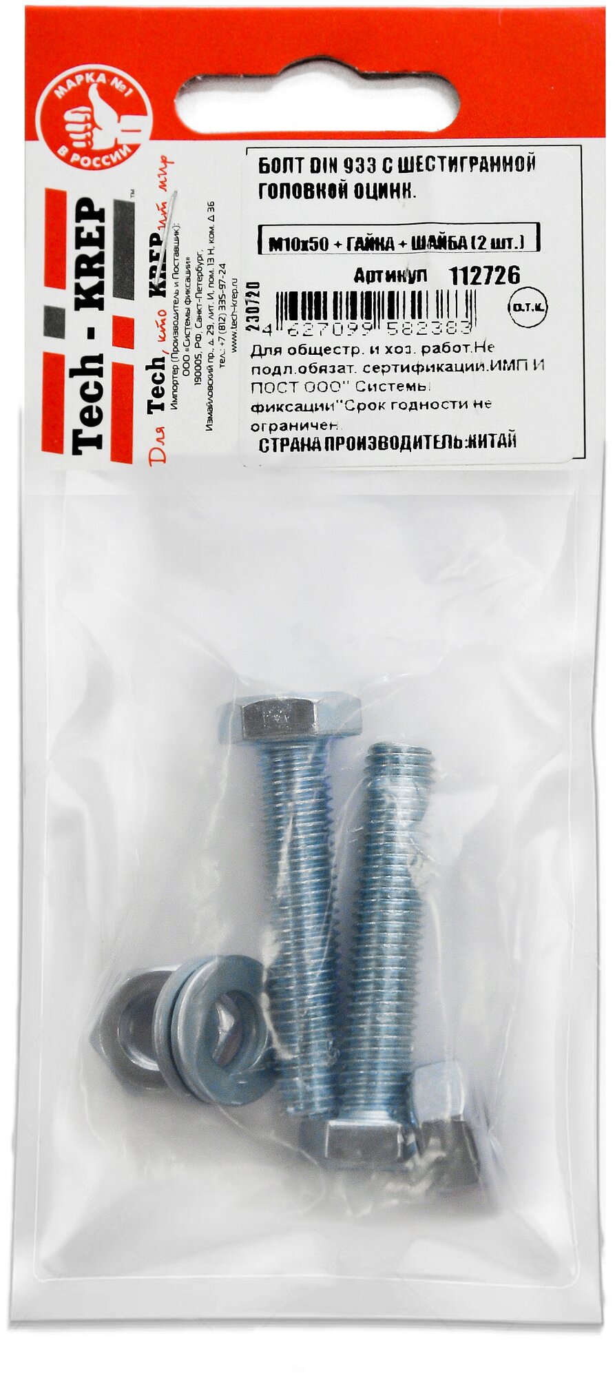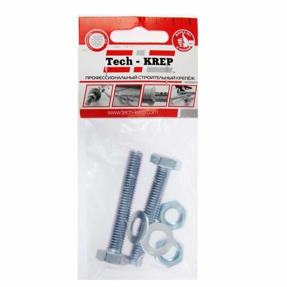 болт din933 с шестигранной головкой оцинк. м10х50 + гайка + шайба (2 шт) Tech-Krep М10х50 DIN933 (2 шт.)