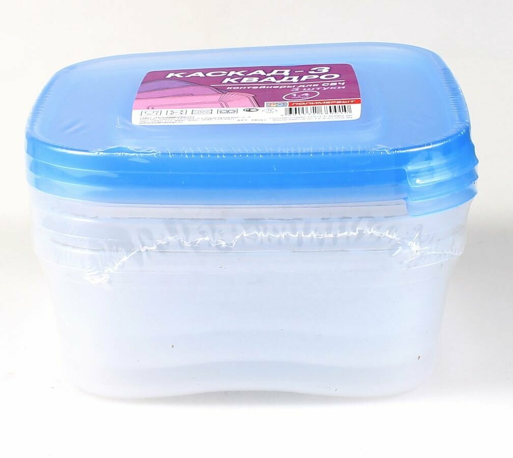 Экономным, практичным, функциональным решением вопроса хранения вещей и продуктов является приобретение комплекта контейнеров "Каскад" Квадро от компании Полимербыт. Комплект состоит из 3 равных по размеру и объему высококачественных контейнеров, имеющих удобную квадратную форму. Объем контейнеров - 1,4л(размер одного еонтейнера 18*18*10,5 см).