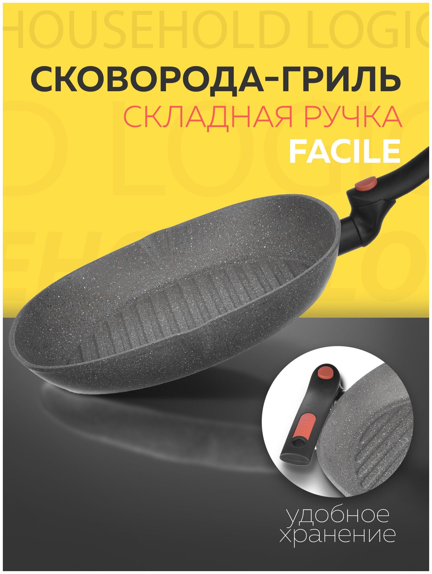Сковорода-гриль со складной ручкой FACILE 28х28см индукция M6151428 Moneta