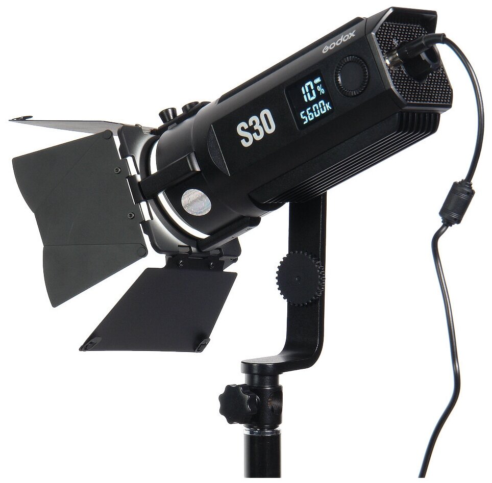 Фокусируемый светодиодный осветитель Godox S30 предназначен для использования в кино- и видеопроизводстве, для съемки интервью, видеообзоров, рекламных роликов, для фотосъемки неподвижных объектов, портретной, свадебной и предсвадебной фотографии.