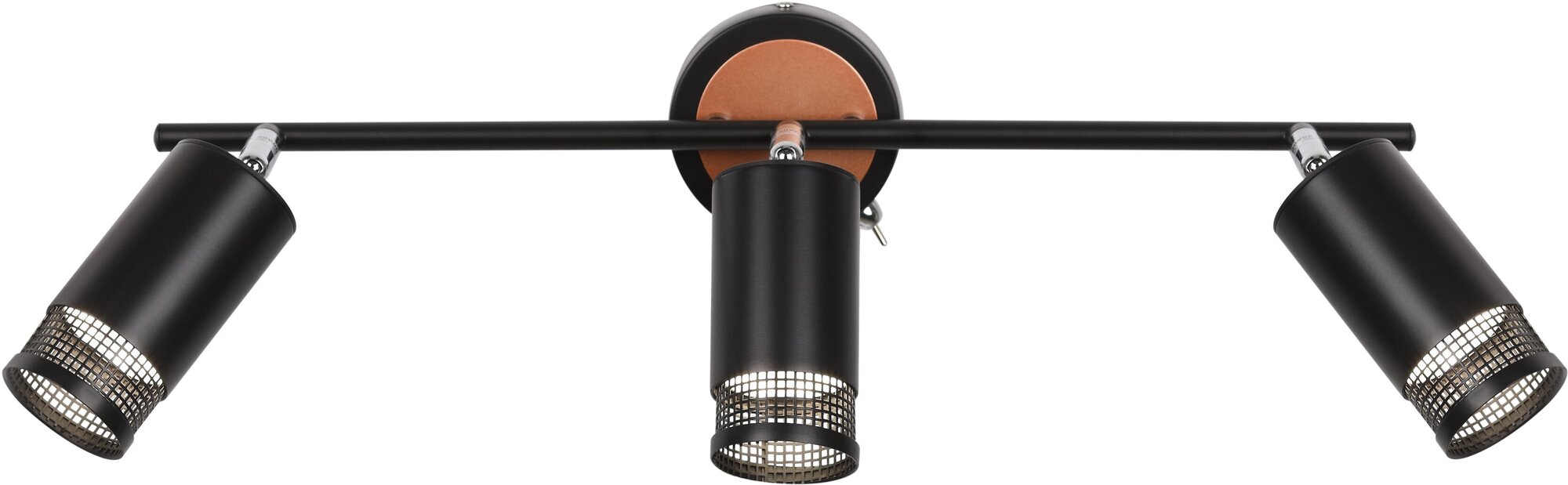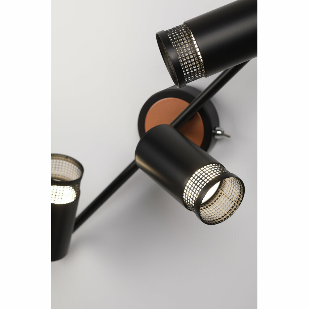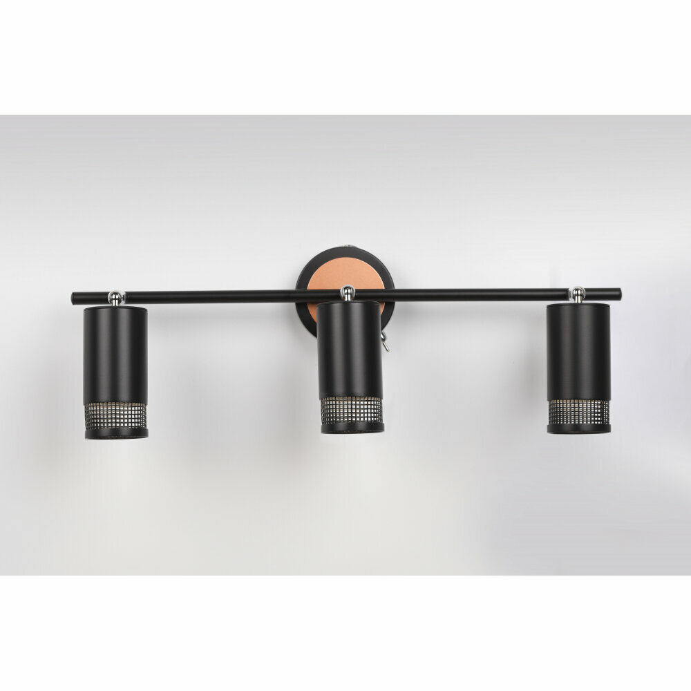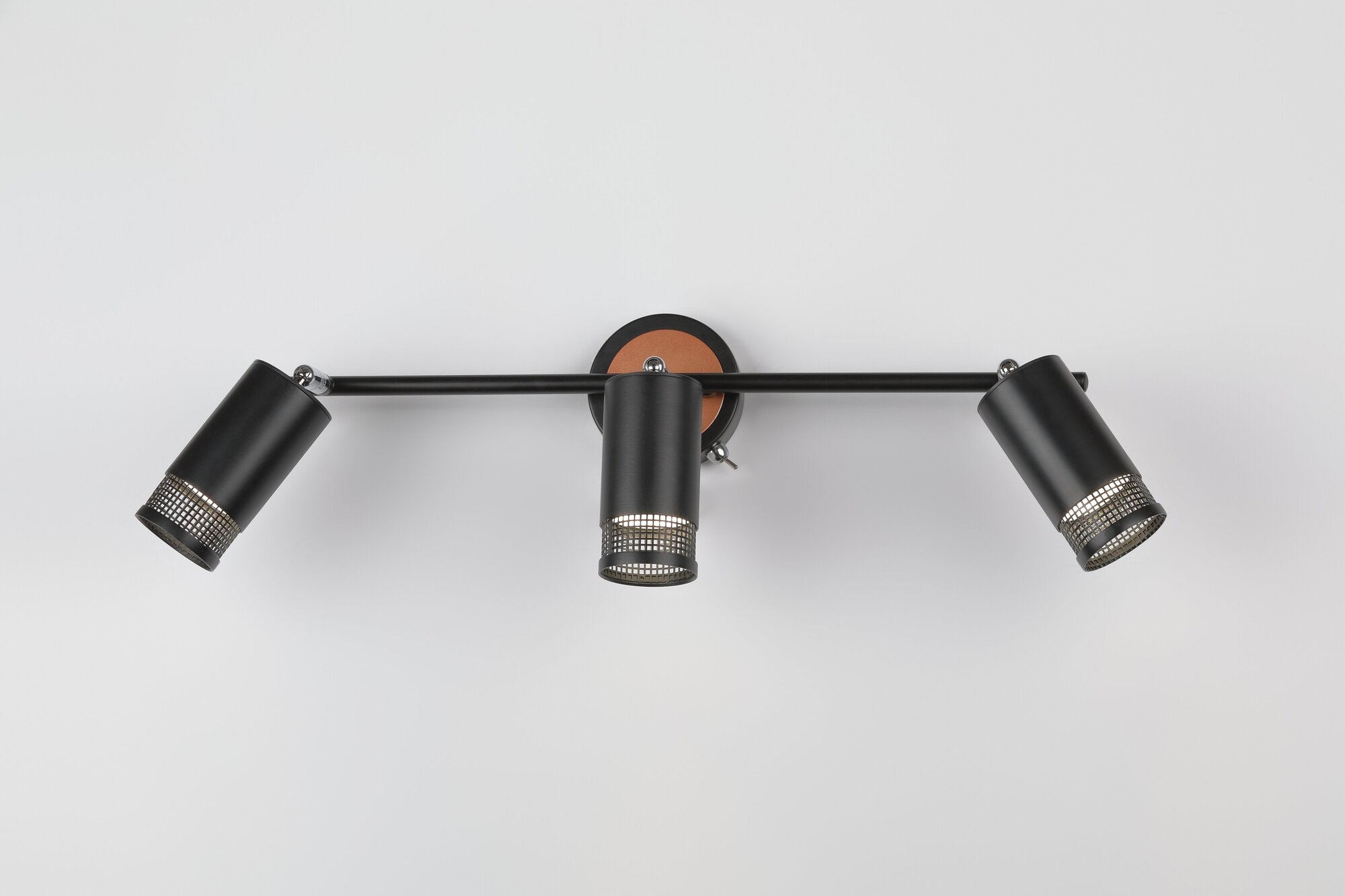 Элегантные поворотные споты Lili имеют удобный выключатель на корпусе, миниатюрная конструкция которого не портит безукоризненный внешний вид светильника. Три лаконичных цилиндрических плафона расположены на тонкой металлической рейке. Арматура гальванизирована в стильные черный и медный цвета.