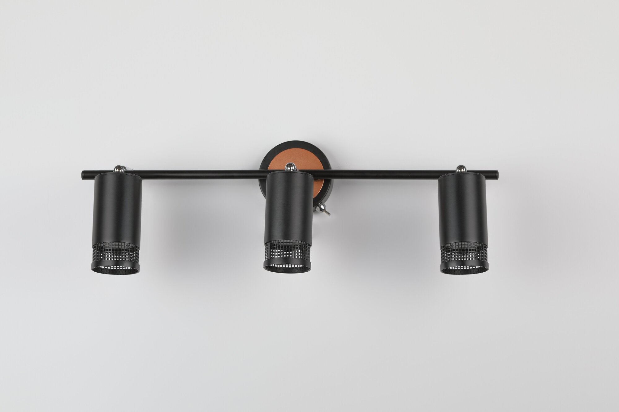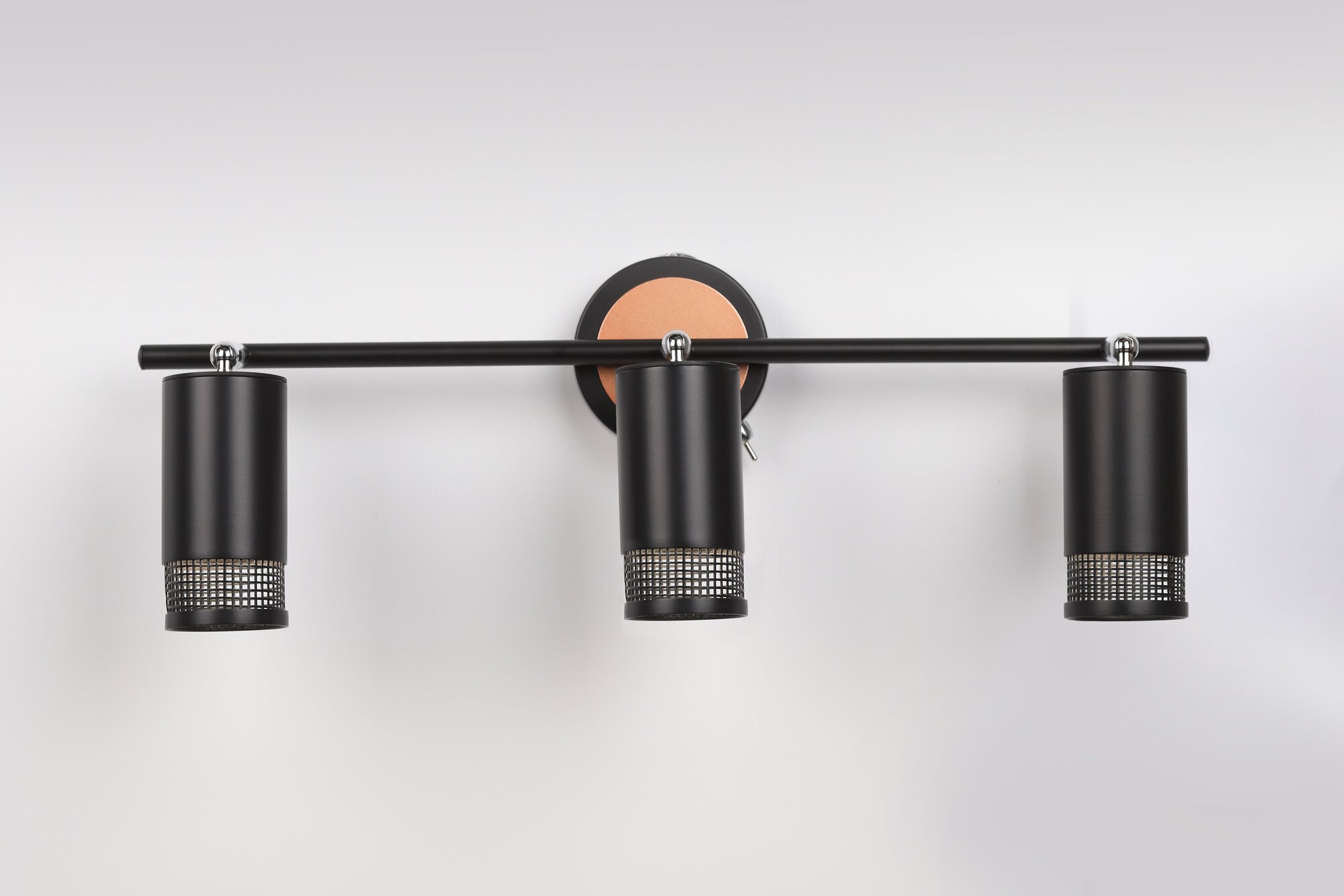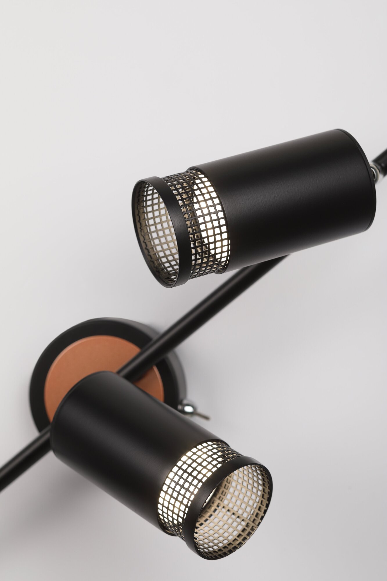 Элегантные поворотные споты Lili имеют удобный выключатель на корпусе, миниатюрная конструкция которого не портит безукоризненный внешний вид светильника. Три лаконичных цилиндрических плафона расположены на тонкой металлической рейке. Арматура гальванизирована в стильные черный и медный цвета.