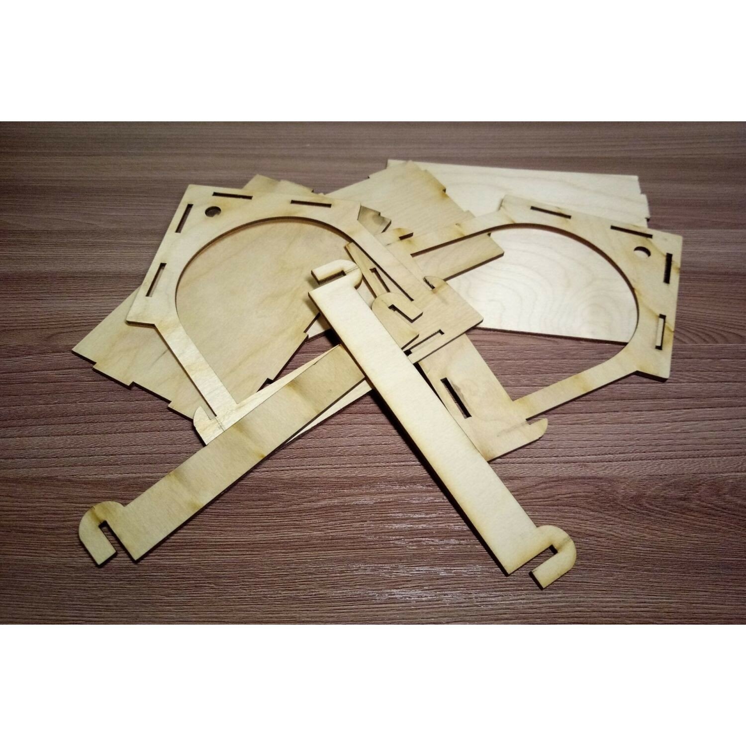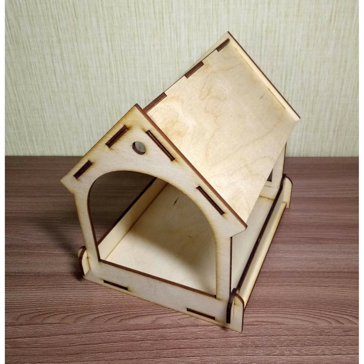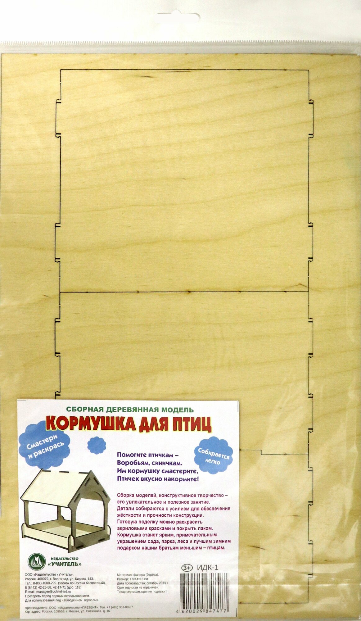 Детали собираются с усилием для обеспечения жёсткости и прочности конструкции. Готовую поделку можно раскрасить акриловыми красками и покрыть лаком. Кормушка станет ярким, примечательным украшением сада, парка, леса и лучшим зимним подарком нашим братьям меньшим - птицам.