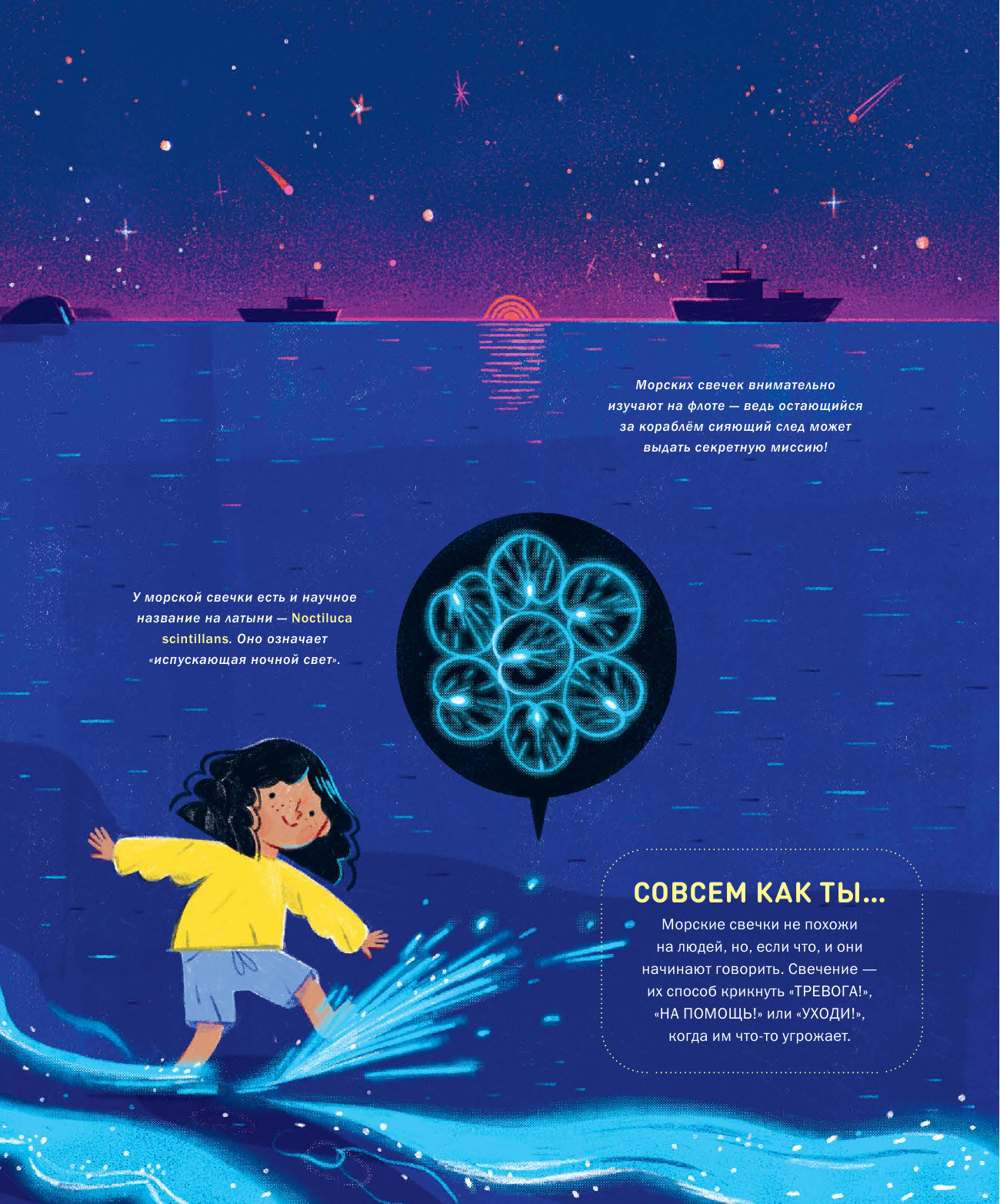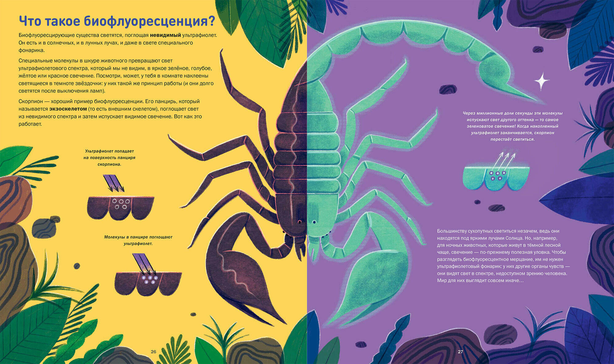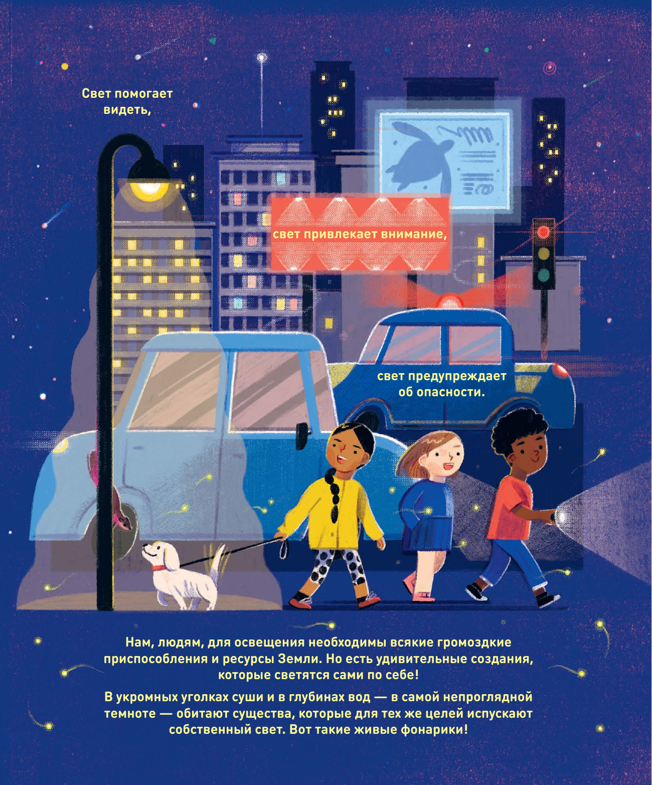 Вы узнаете, как и почему животные на суше и под водой излучают свет, чем флуоресценция отличается от биолюминесценции и как человек может применить эту поразительную находку природы в обычной жизни. А благодаря неожиданным фактам, таинственной атмосфере и живописным иллюстрациям эта книга понравится не только маленьким читателям, только начинающим приобщаться к научно-популярной литературе, но и взрослым!