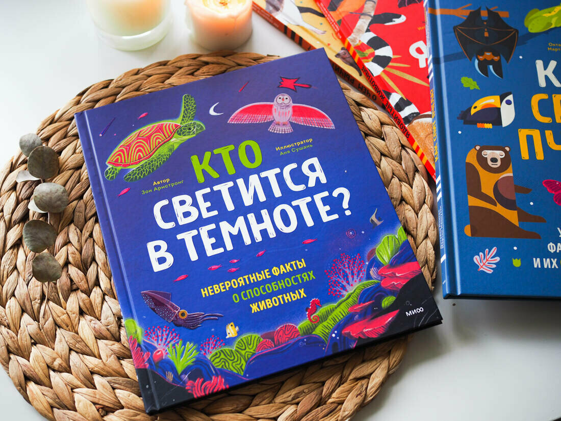 Название новинки издательства МИФ "Кто светится в темноте?", вышедшее в уже зарекомендовавшей себя серии "МИФ. Нескучные факты" очень заинтриговало нас с ребенком, захотелось побыстрее заглянуть в книгу и узнать про светящихся животных.