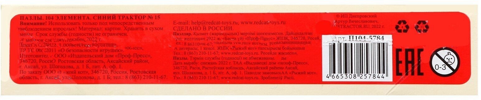 Puzzle-104 Синий трактор №15 Рыжий кот