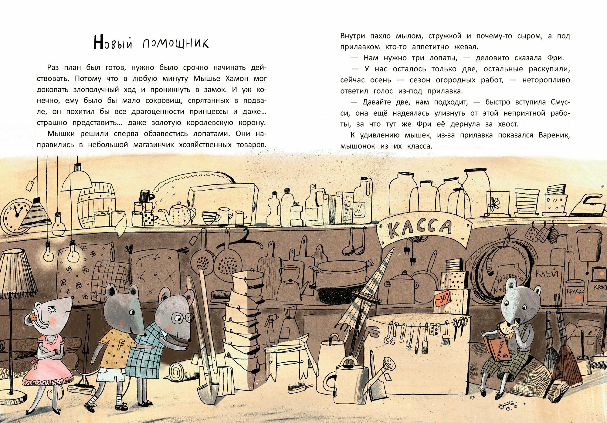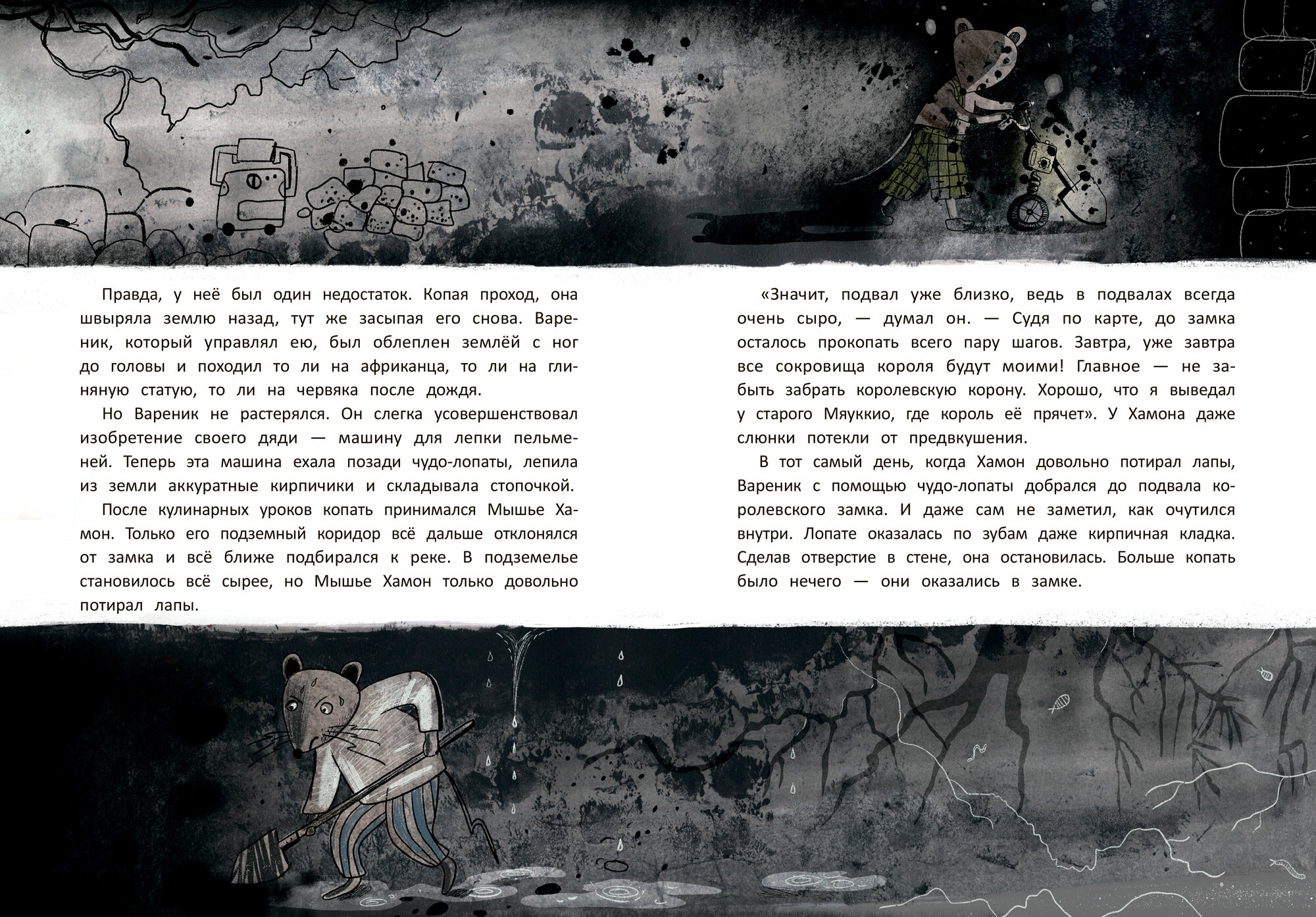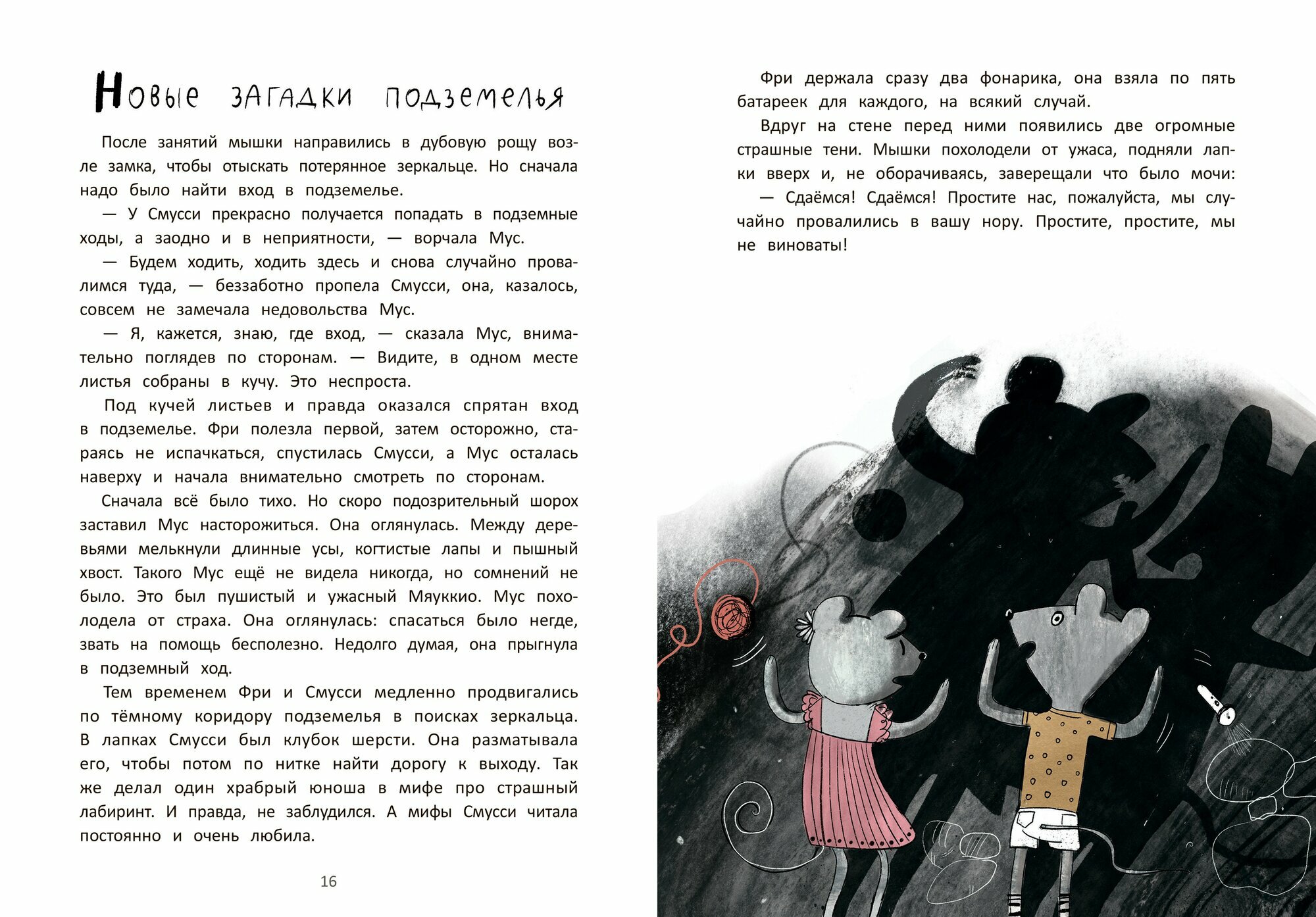 В этой истории прелестно всё: имена учениц и учеников (Лимонадик, Вермешель, Морошка и другие) и их преподавателей (Мышильда Мокроусовна, Маустина IV, Мышщ - догадайтесь, кто какой предмет преподает), трогательная любовная история Мисс Мюсли и Вайта, нежнейшая дружба синьора Мяуккио и Хвостанции и, конечно, любимые иллюстрации Ольги Фадеевой. Другие, не совсем привычные, немного мрачноватые и это оправданно, ведь действие происходит под землей и старинном замке, но такие узнаваемые. Мы рады, что эта книга пополнила нашу коллекцию данного автора и иллюстратора.