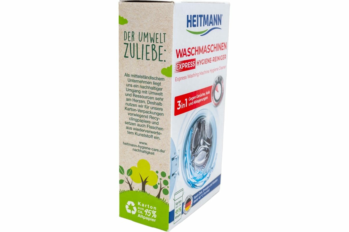 Экспресс-очиститель для стиральных машин Heitmann Waschmaschinen Hygiene-Reiniger Express 250 гр. Основательно очищает стиральную машину от известковых отложений и запахов, в том числе в труднодоступных местах. Экспресс-очиститель обеспечивает глубокую гигиеническую чистоту уже при 40°C. Это экономит ваше время, энергию и затраты. Очищает, ухаживает, защищает. Работает на основе лимонной, яблочной и винной кислоты. Обеспечивает гигиенически чистую машину и как следствие - свежее белье. Кроме того регулярное удаление извести поможет продлить срок службы вашей стиральной машины.