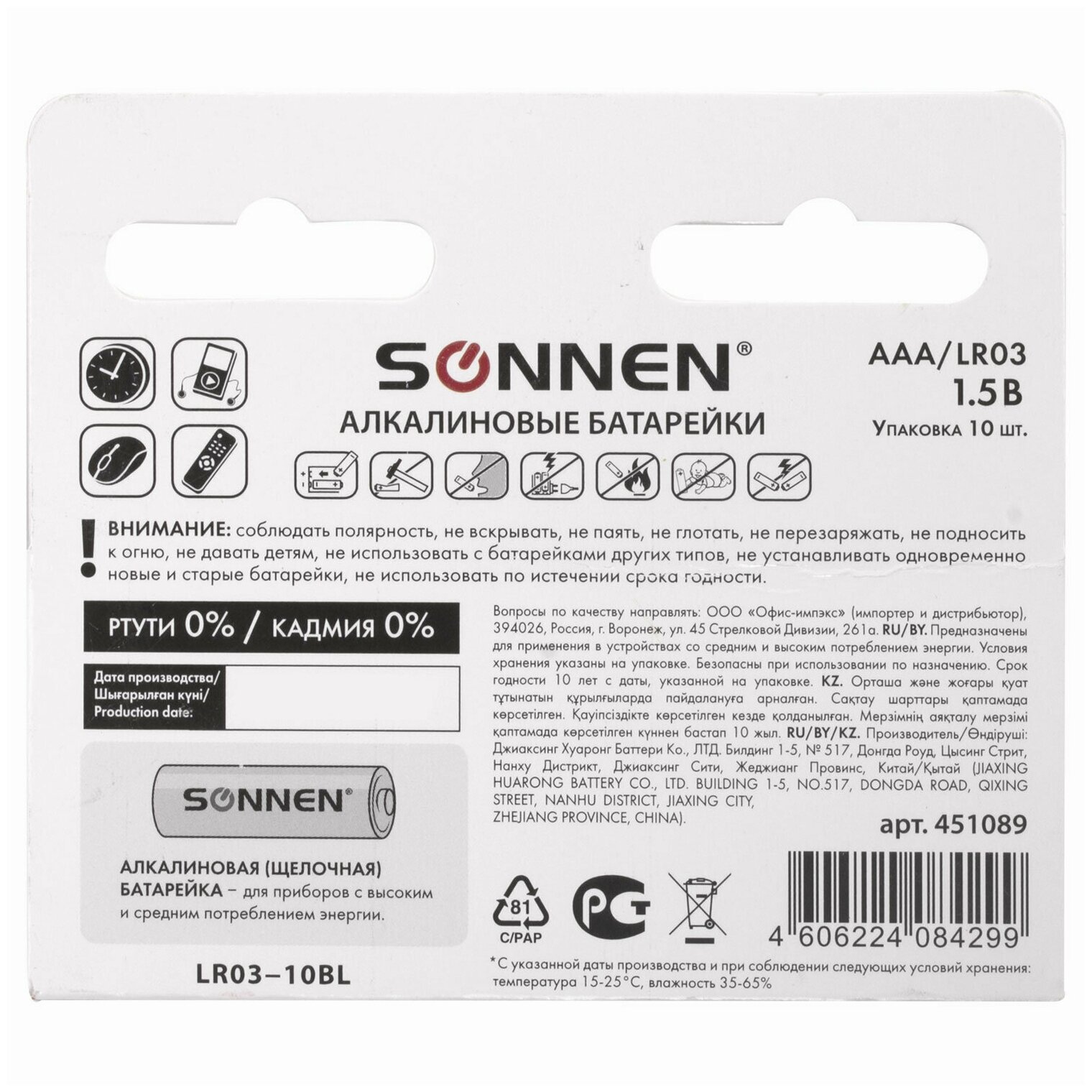 Батарейки Sonnen Alkaline AAA LR03 24А 10шт