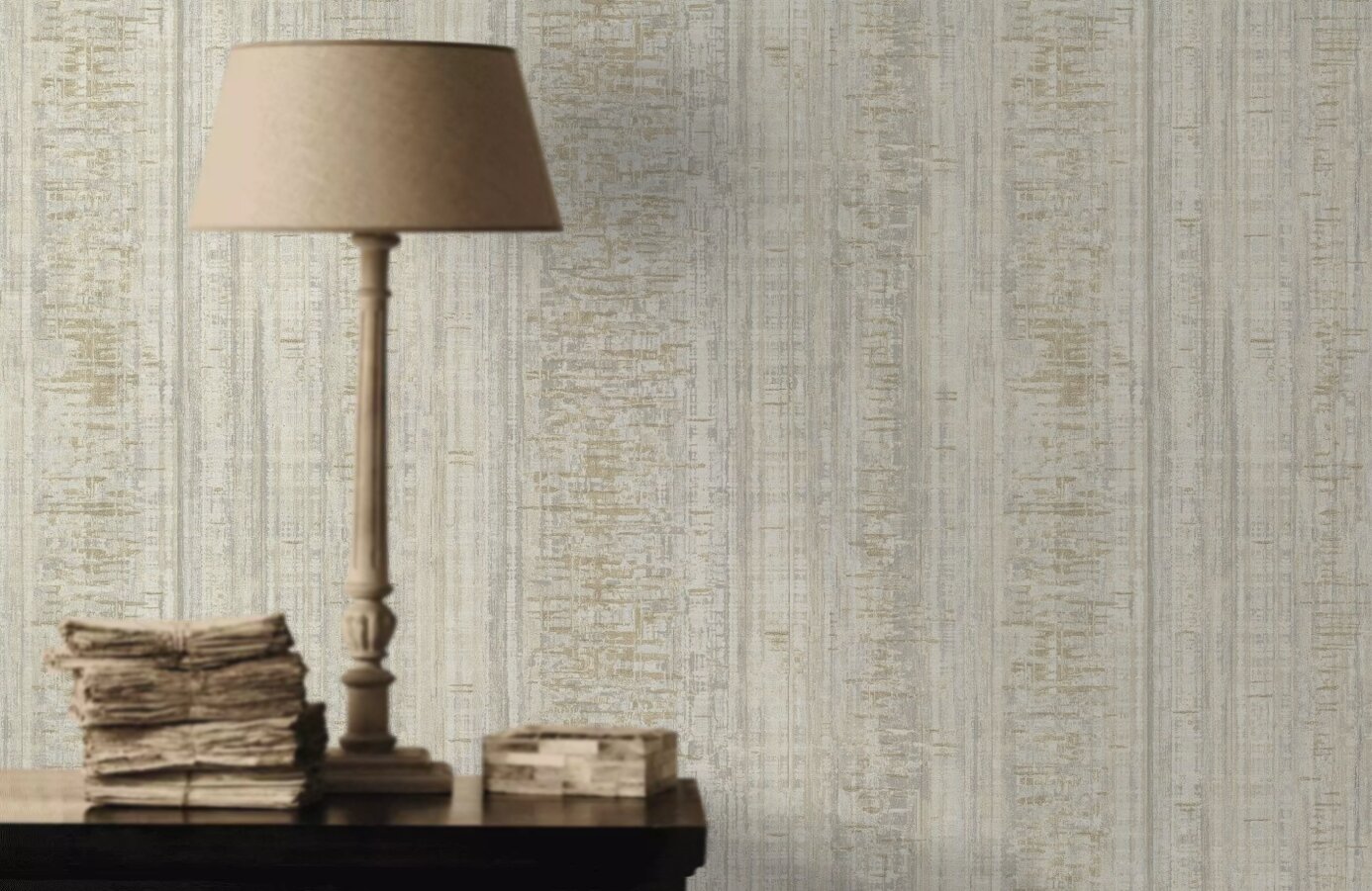 Обои Grandeco Universe 2023 US 4009 Винил на флизелине (1,06*10,05) Серый/Золотой, Полоса