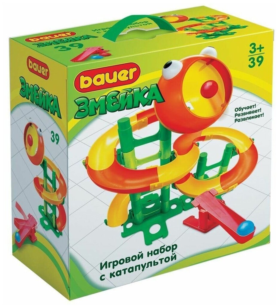 Развивающая игрушка Bauer Змейка, 39 деталей понравится любому малышу. Это занимательная игра не только для детей от 3 лет но и для всей семьи. Для начала, необходимо собрать из деталей саму «Змейку», а затем при помощи катапульты запускать шарик так, чтобы «Змейка» смогла его проглотить. Тренируйте ловкость!