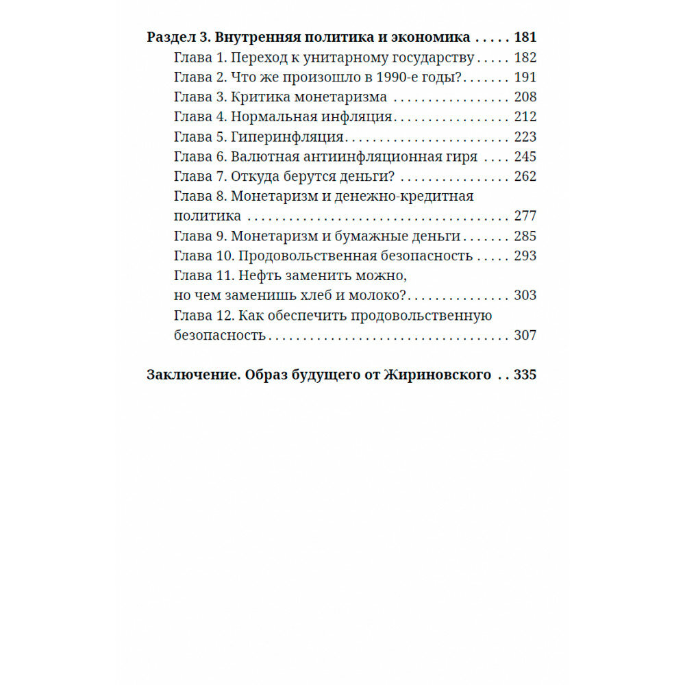 Книга основана на работах Жириновского, опубликованных еще в 90-е годы. Первые два раздела взяты из книги "О судьбах России" и посвящены вопросам истории и политики, третий - из книги "Новые деньги для России и мира" (написана в соавторстве с Юровицким) и посвящен экономическим проблемам. Книги Жириновского, как правило, издавались не для продажи, а для целей его партии и его института, прежде всего для бесплатного массового распространения среди избирателей. Почти всё его партия и институт опубликовали и в электронном виде. Вообще, общее собрание сочинений Жириновского насчитывает сотню томов, избранные сочинения изданы в трех томах. Эта книга Жириновского издана непосредственно для целей продажи, но стоит, конечно, дороговато.