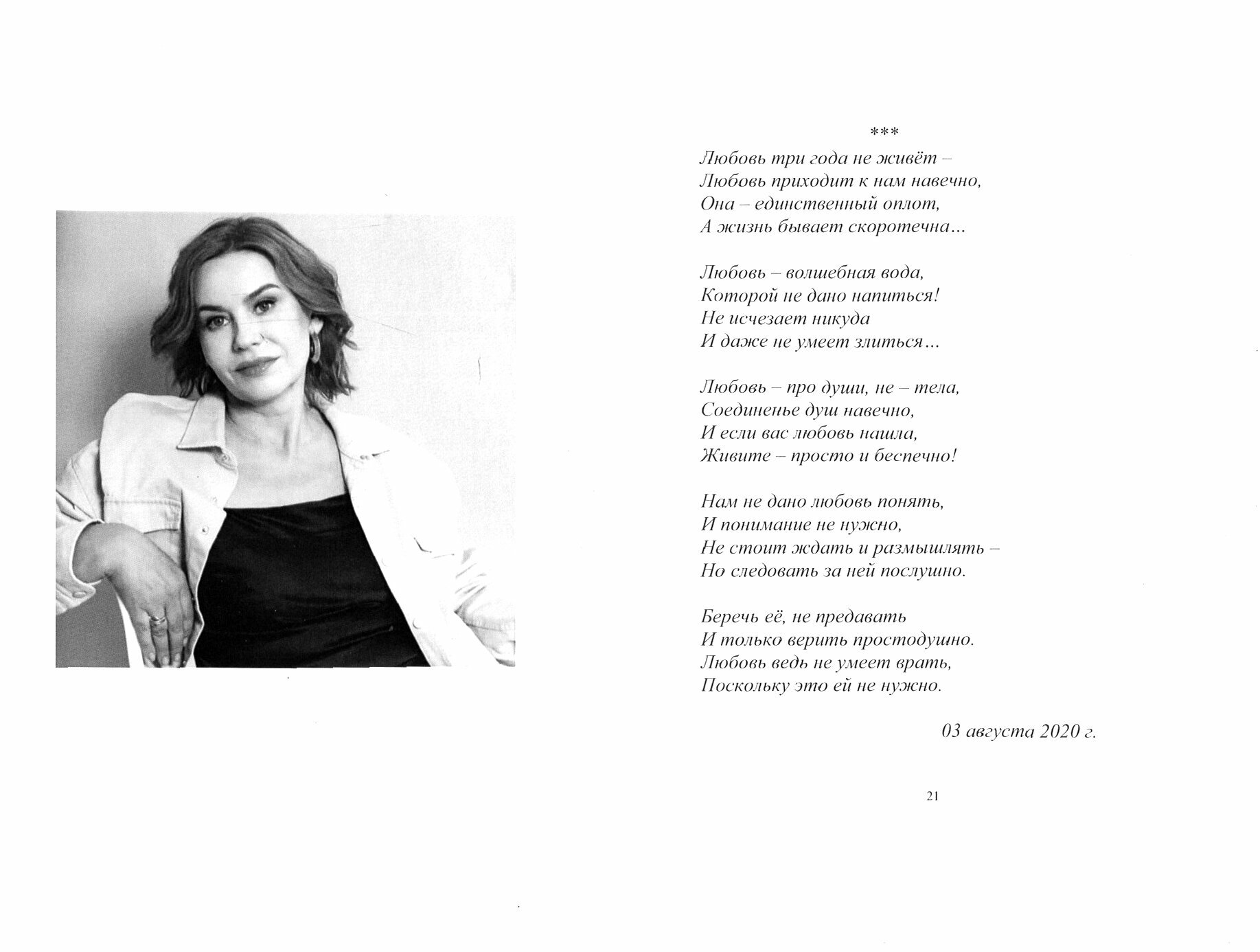 Стихи - как музыка в ночи, Звучат родными голосами, От сердца отдают ключи, Полны земными адресами. В книге представлены стихи Татьяны Колессы - поэтессы, исполнительницы песен, актрисы.